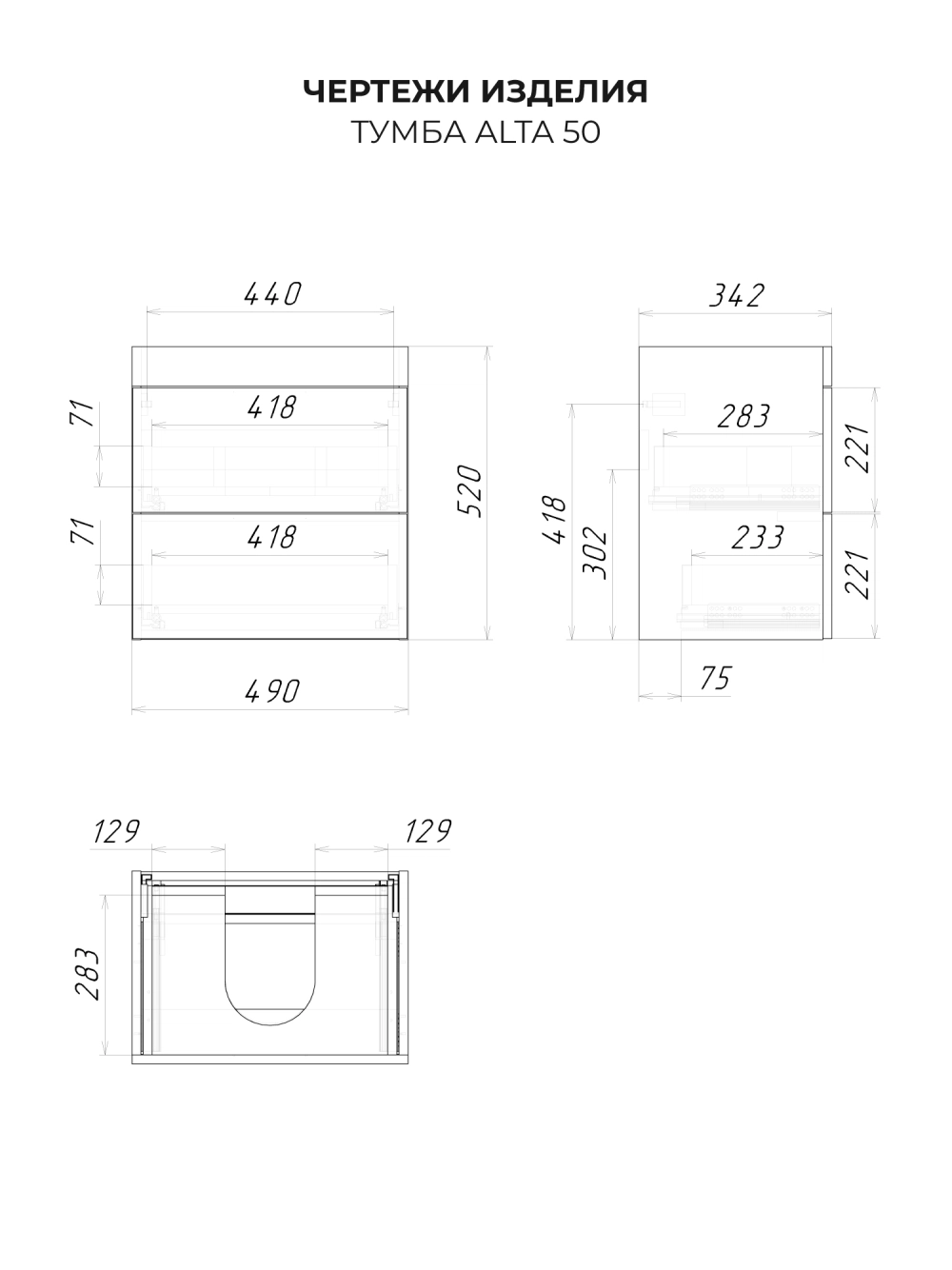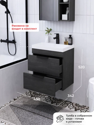 Подвесная тумба под раковину из коллекции Alta станет настоящим украшением ванной комнаты в современном стиле. Навесной способ установки тумбы в ванную дает возможность не только визуально увеличить пространство, но и обеспечивает быстрый и удобный доступ для уборки. Размеры подвесной тумбы под раковину 490*342*520 - идеальный выбор для ванной комнаты или туалета. Тумба под раковину изготовлена из ламинированного ДСП, поэтому выдерживает высокие эксплуатационные нагрузки. Качественная фурнитура с доводчиками обеспечивает легкое открывание и плавное закрывание ящиков. Вырез под сифон универсальный, для любого типа. Благодаря своей конструкции тумба обеспечивает удобный доступ к раковине и позволяет скрыть коммуникации. Тумба под раковину в ванную оснащена двумя удобными ящиками для хранения, что позволяет разместить всё необходимое под рукой. Для точного выбора подвесной тумбы под раковину в ванную комнату рекомендуем обратиться к схеме замеров, которая находится на фото в карточке товара, размеры изделия могут отличаться +/-1 см в связи со спецификой производства. Тумба для ванной доставляется в предварительно собранном виде, надежно упакована.