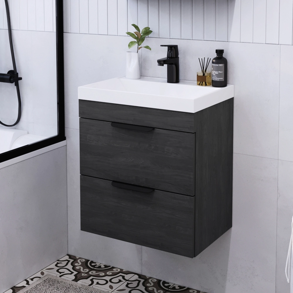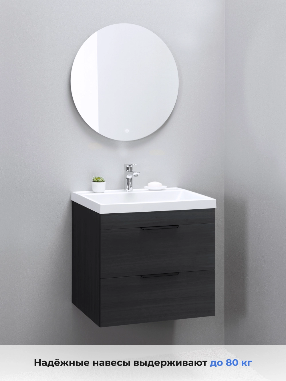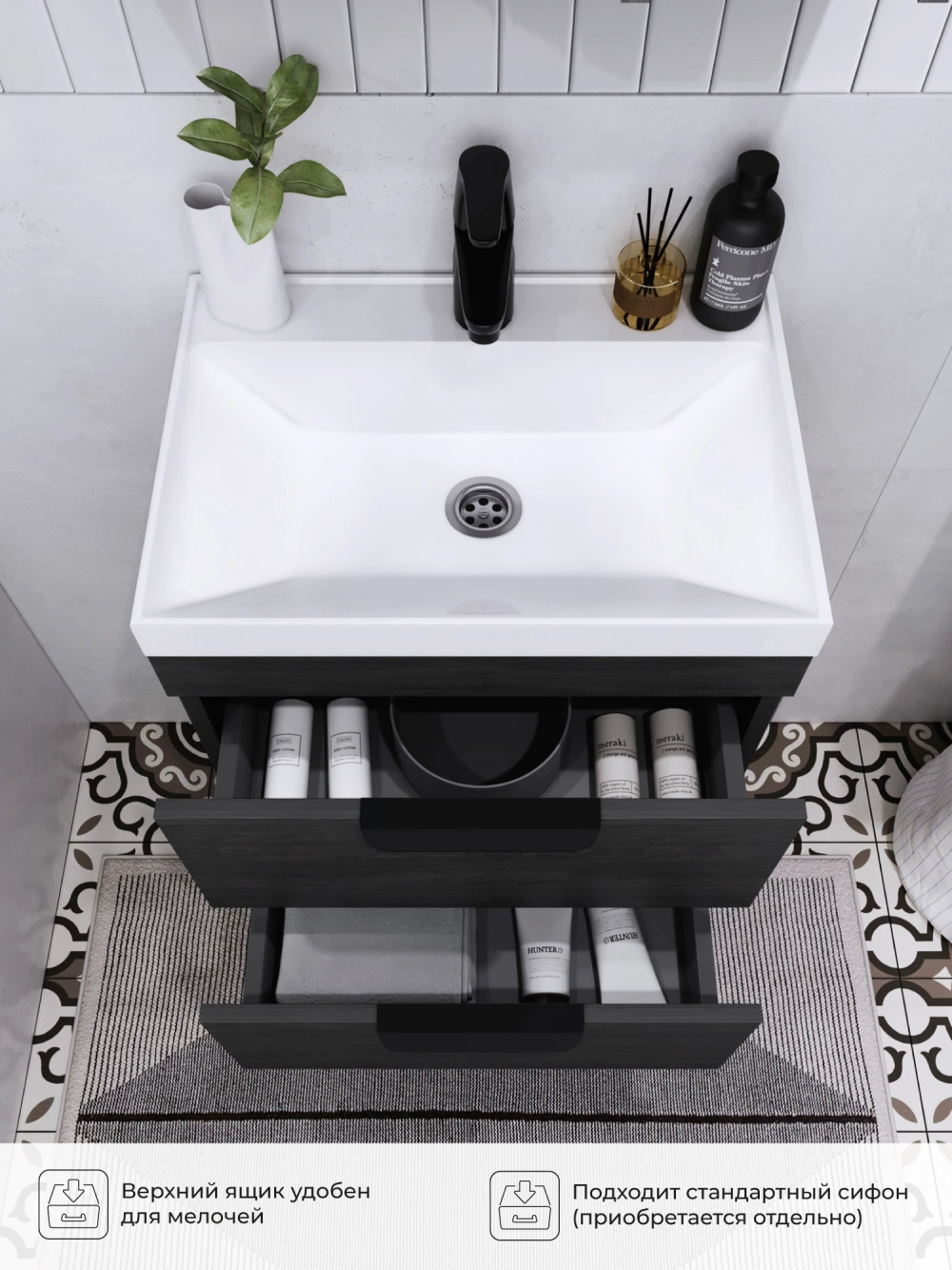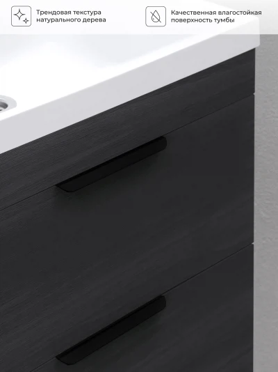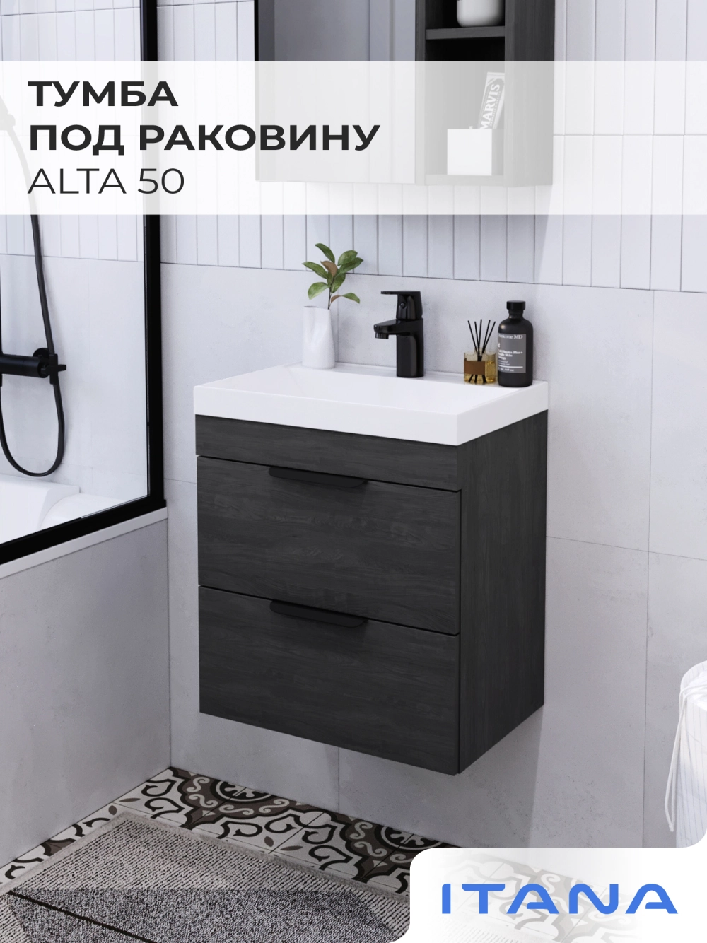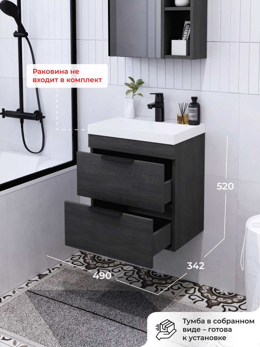 Тумба под раковину подвесная Итана Alta 50 с выдвижными ящиками под умывальник Clarissa 50 Морское дерево Карбон