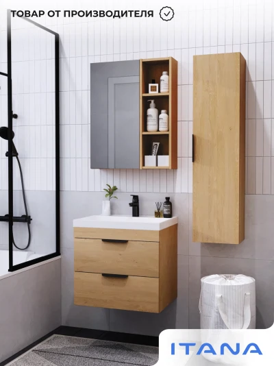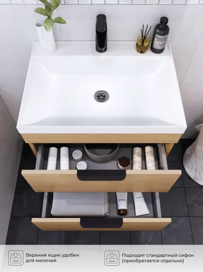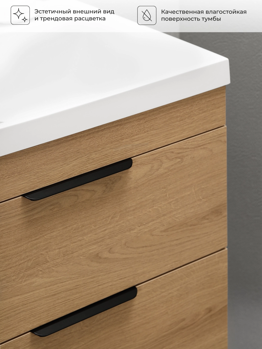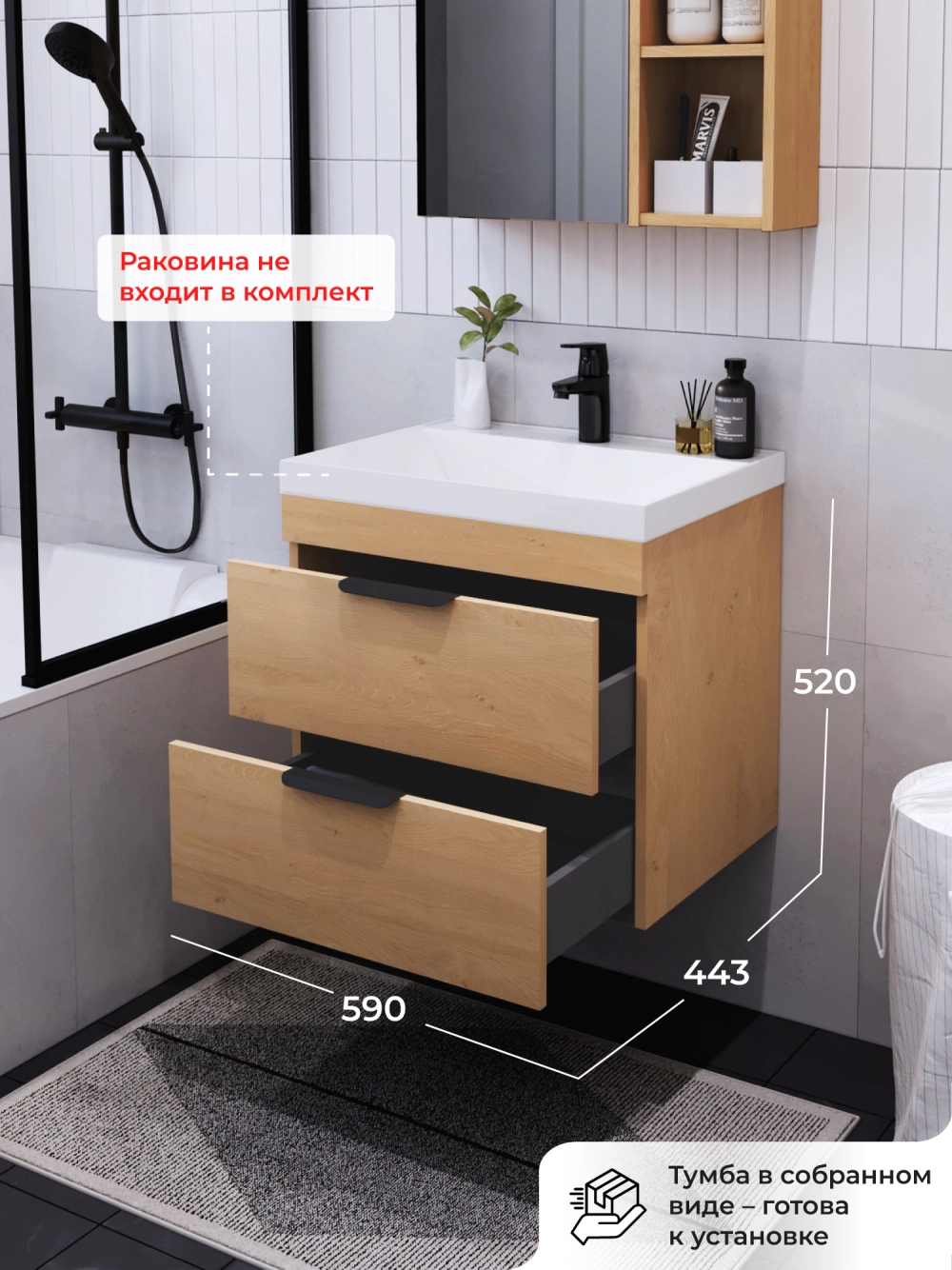 Тумба под раковину подвесная Итана Alta 60 с выдвижными ящиками под умывальник Clarissa 60 Дуб Корбридж натуральный