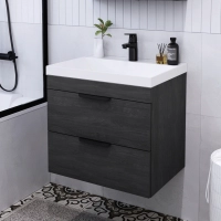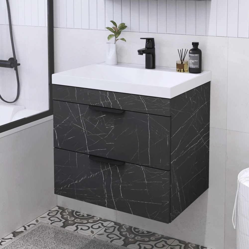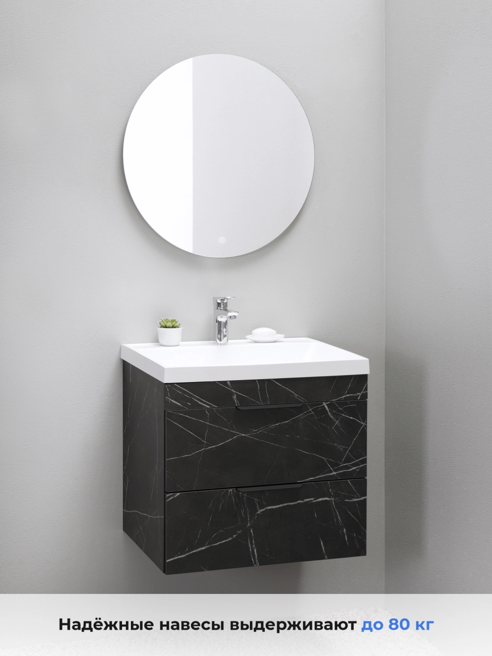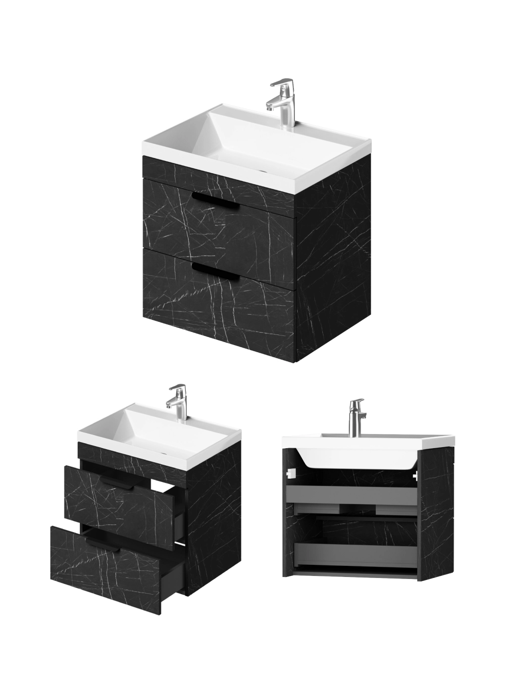 Тумба под раковину подвесная Итана Alta 60 с выдвижными ящиками под умывальник Clarissa 60 Камень Пьетра Гриджиа Черный
