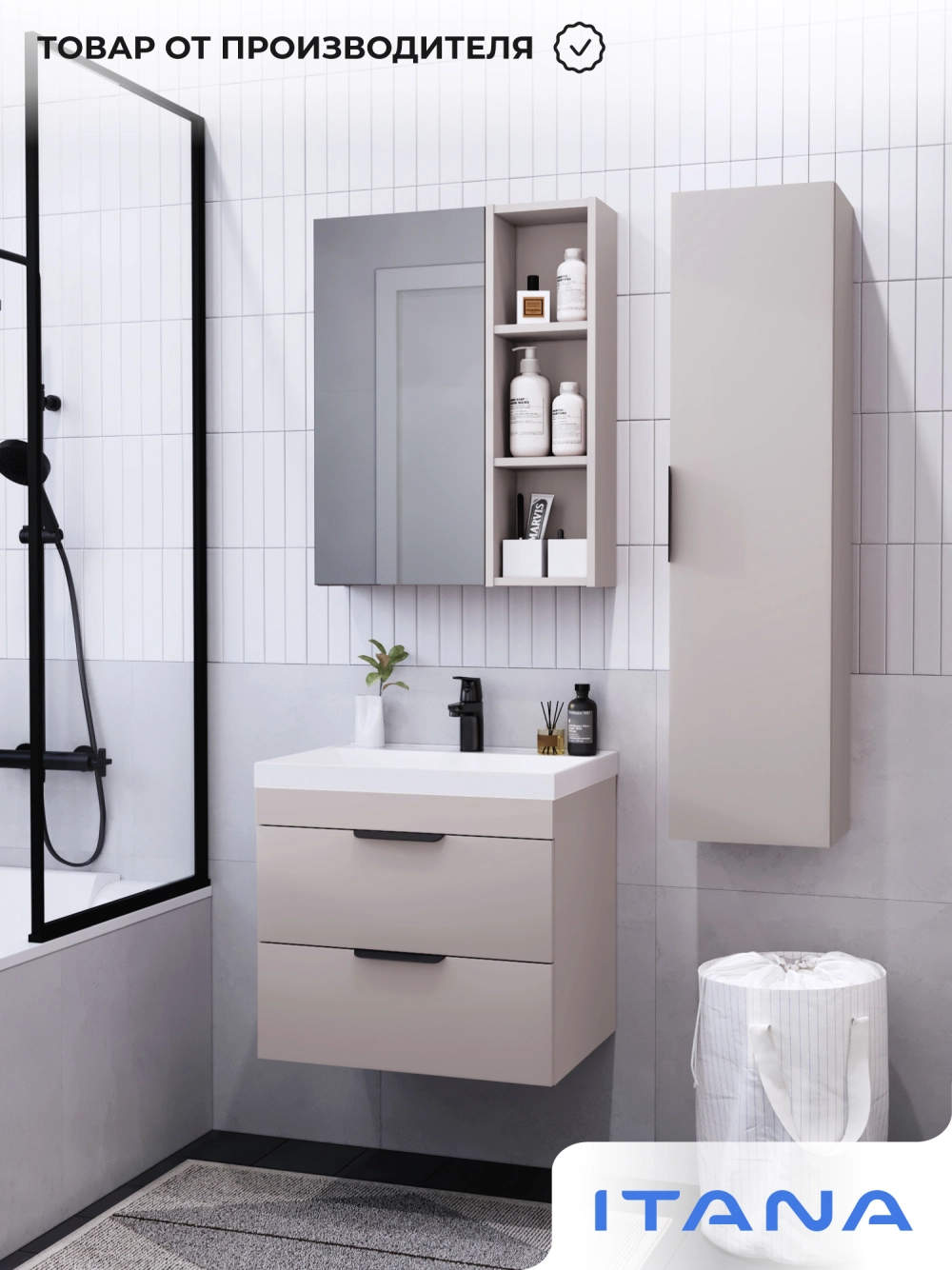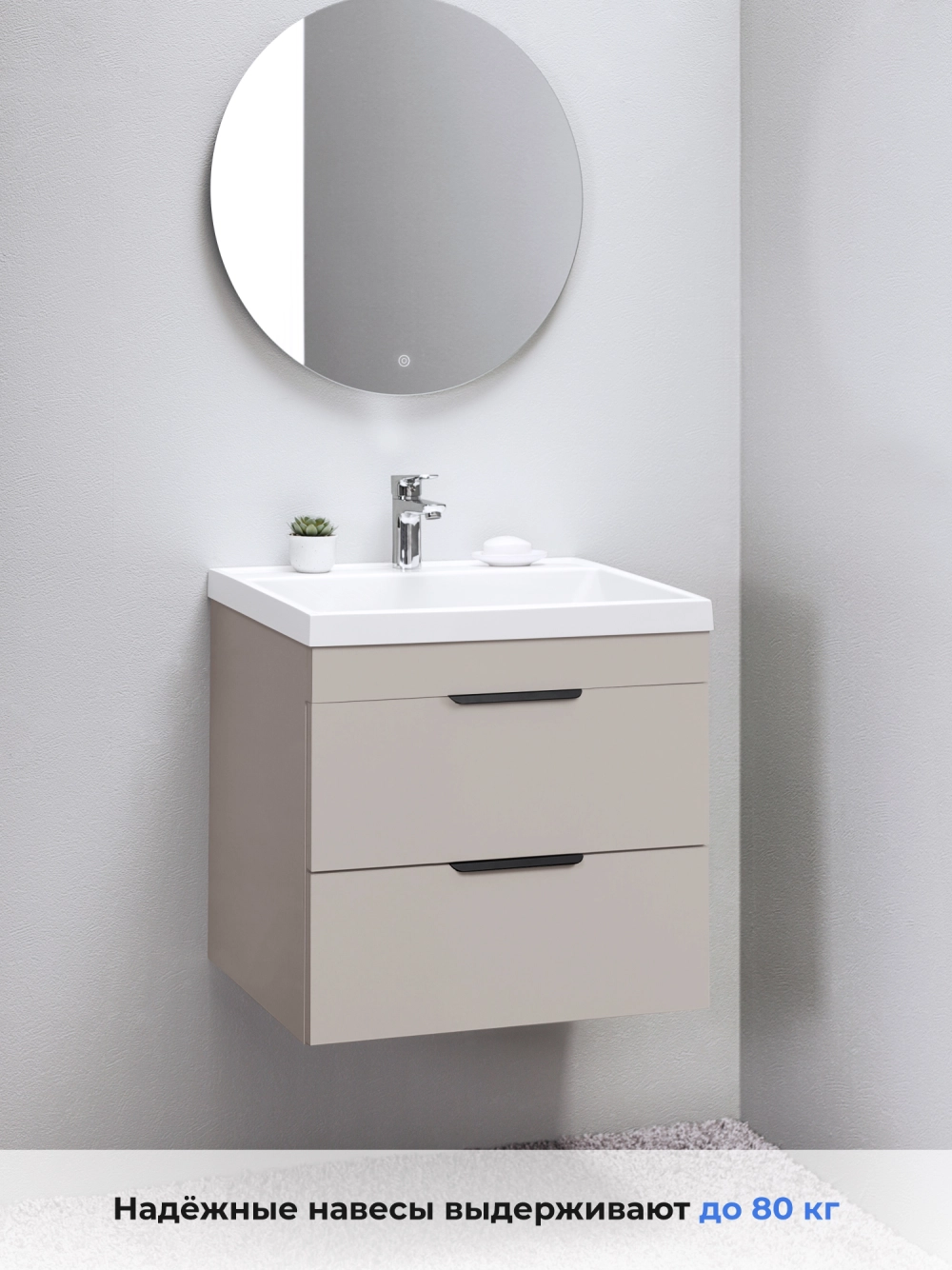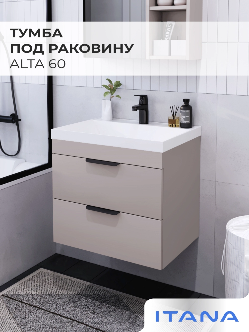 Тумба под раковину подвесная Итана Alta 60 с выдвижными ящиками под умывальник Clarissa 60 Кашемир серый