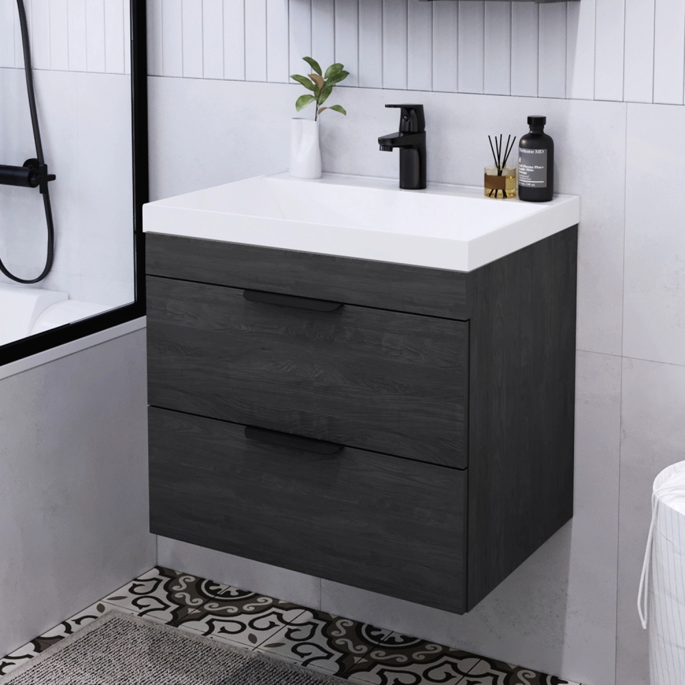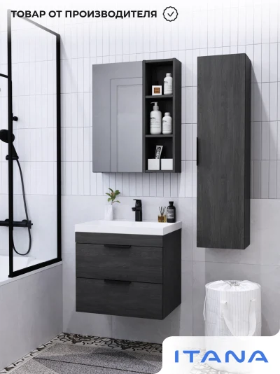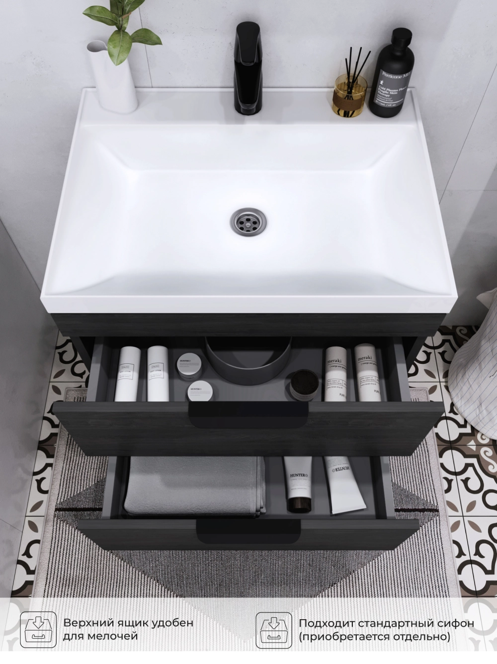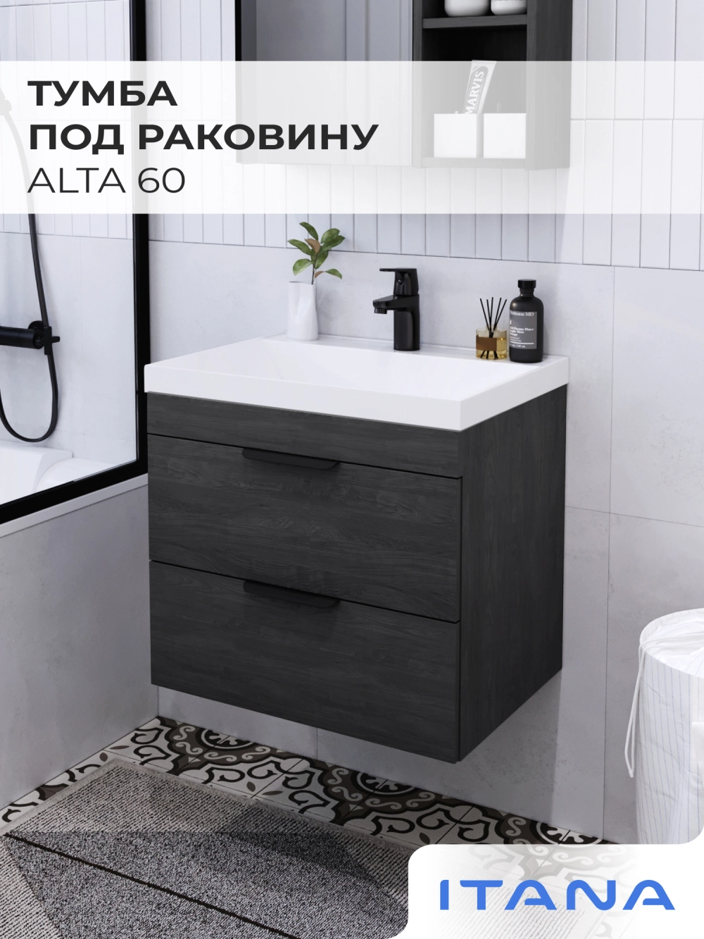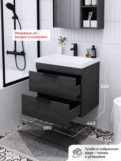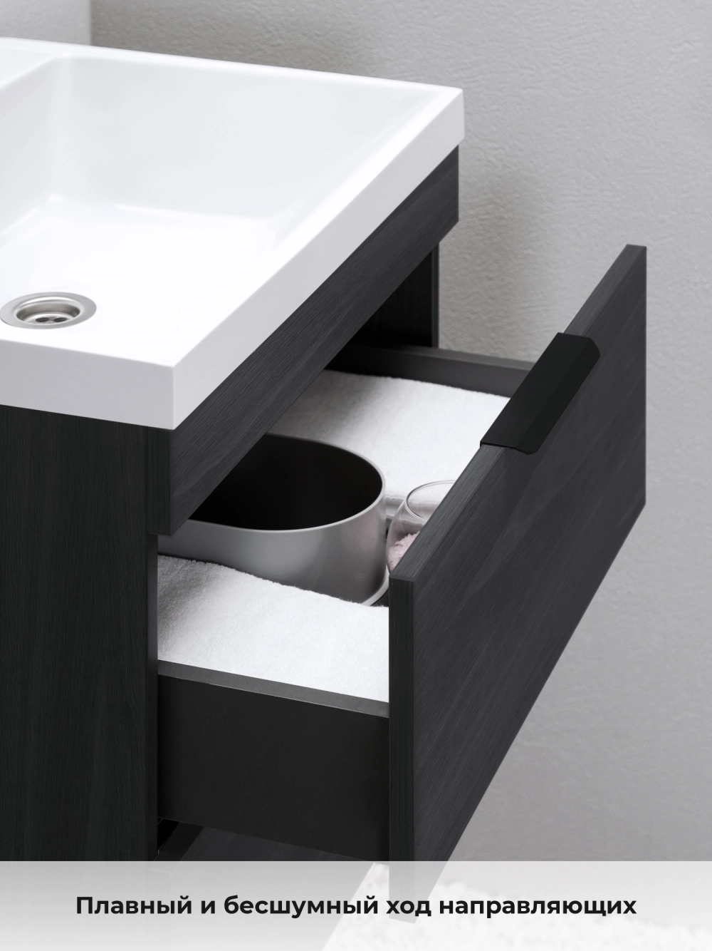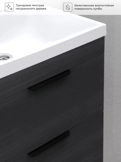 Тумба под раковину подвесная Итана Alta 60 с выдвижными ящиками под умывальник Clarissa 60 Морское дерево Карбон