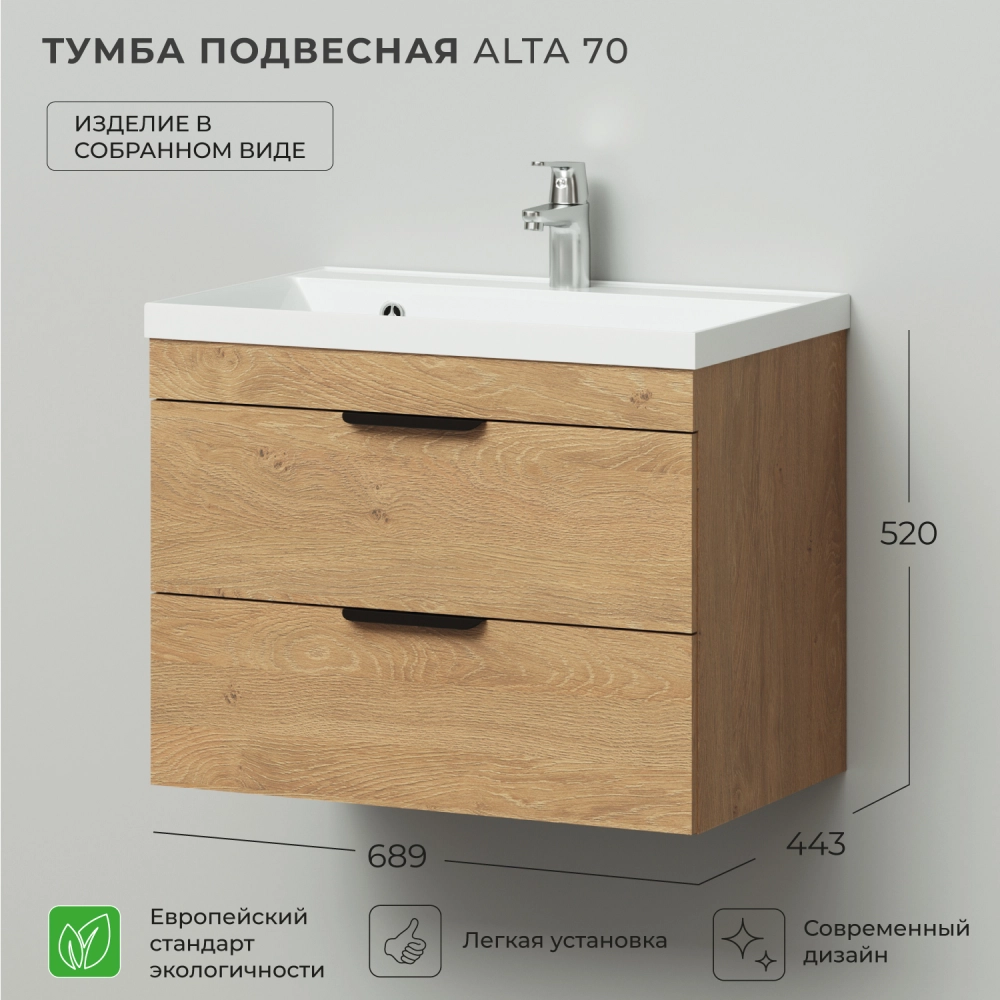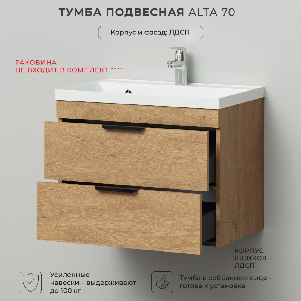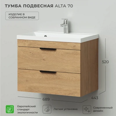 Тумба под раковину подвесная Итана Alta 70 с выдвижными ящиками под умывальник Clarissa 70 Дуб Корбридж натуральный