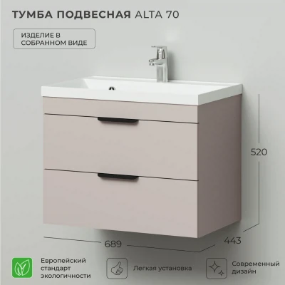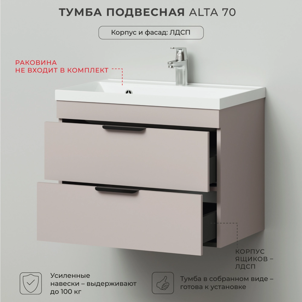Тумба под раковину подвесная Итана Alta 70 с выдвижными ящиками под умывальник Clarissa 70 Кашемир серый