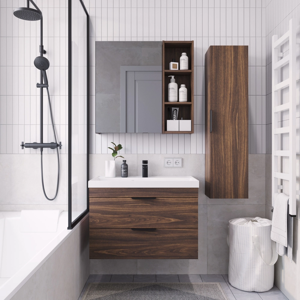 Тумба под раковину подвесная Итана Alta 80 с выдвижными ящиками под умывальник Clarissa 80 Дуб бурбон