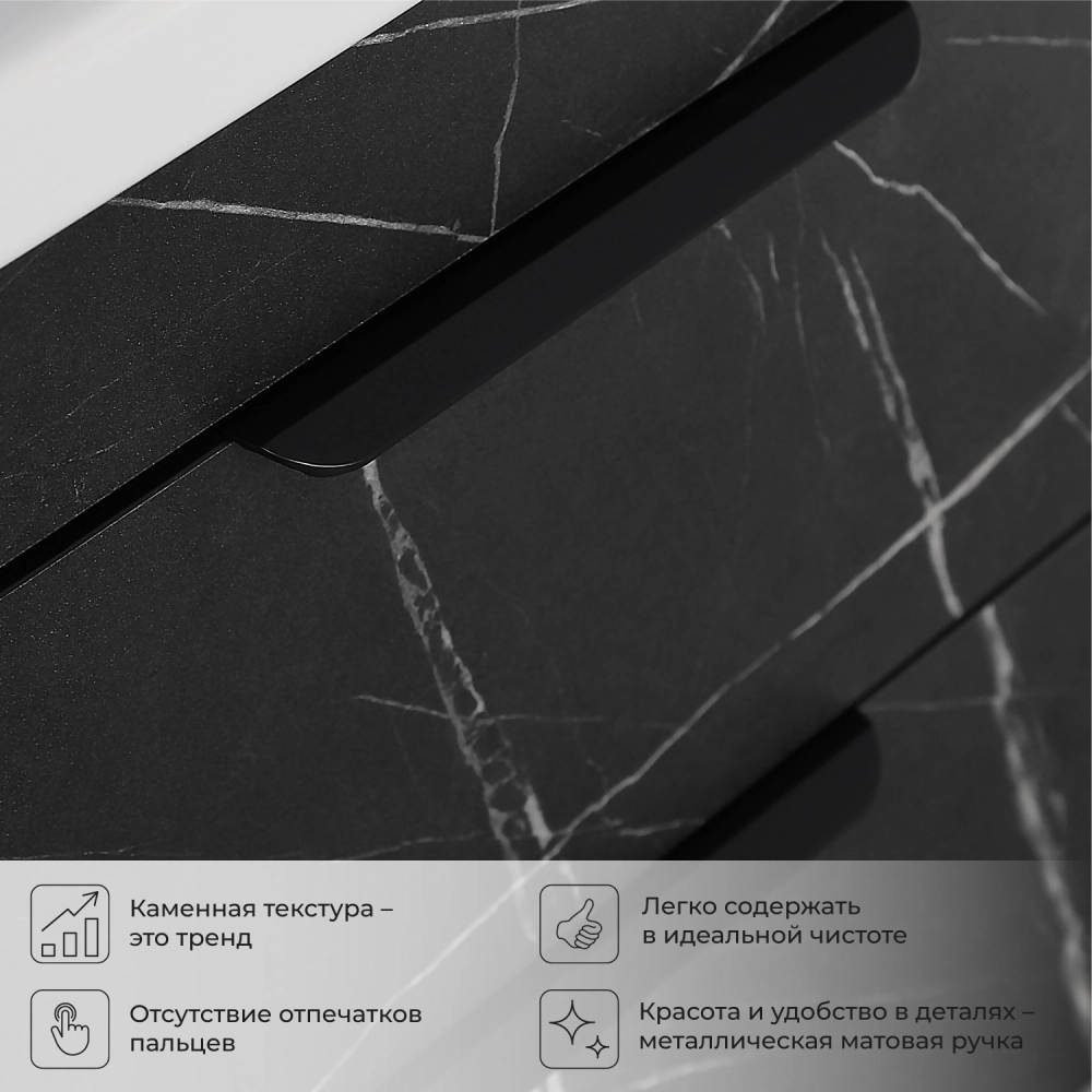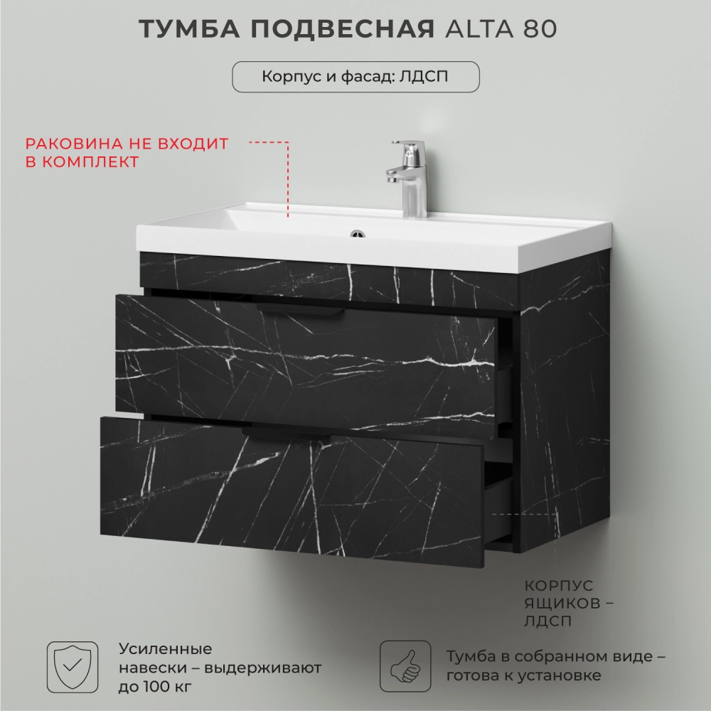 Тумба под раковину подвесная Итана Alta 80 с выдвижными ящиками под умывальник Clarissa 80 Камень Пьетра Гриджиа черный