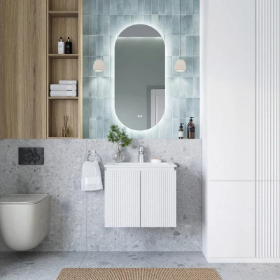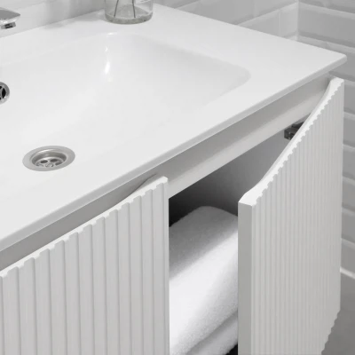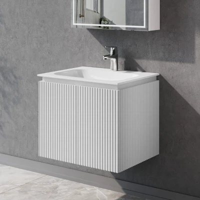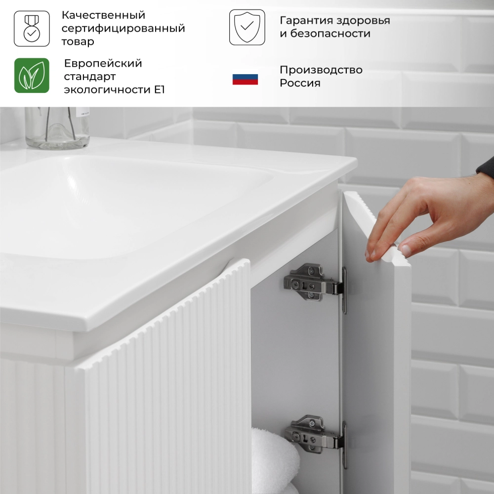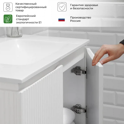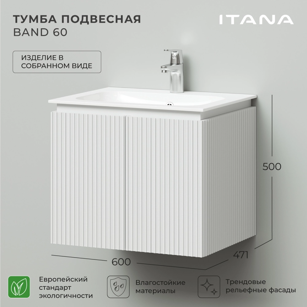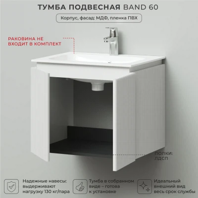 Тумба под раковину подвесная Итана BAND 60 с распашными дверцами Белый матовый Soft touch