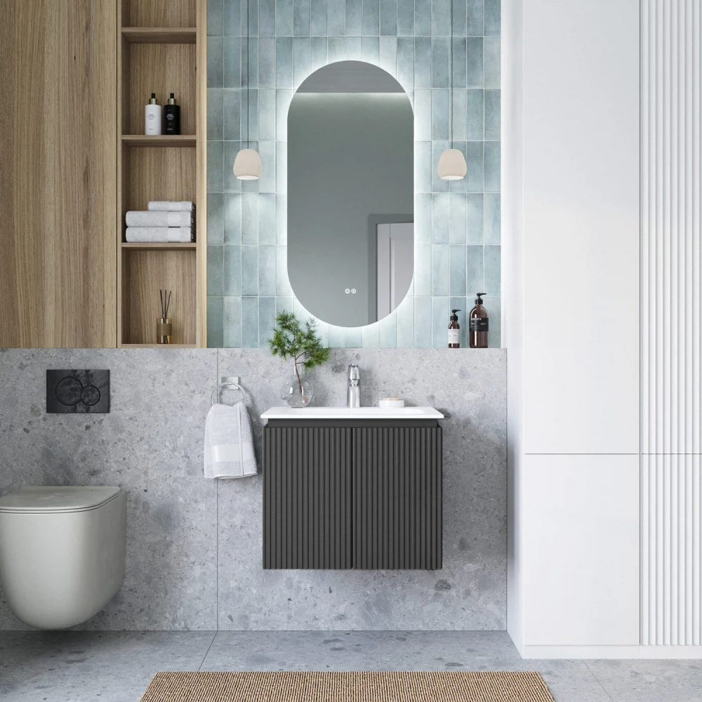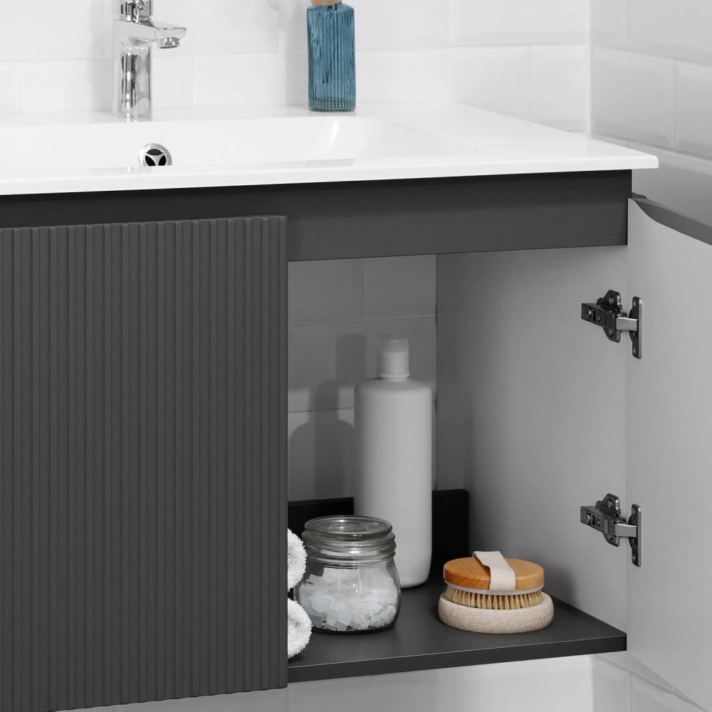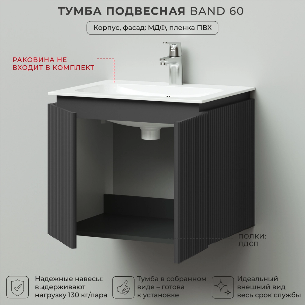 Тумба под раковину подвесная Итана BAND 60 с распашными дверцами Графит