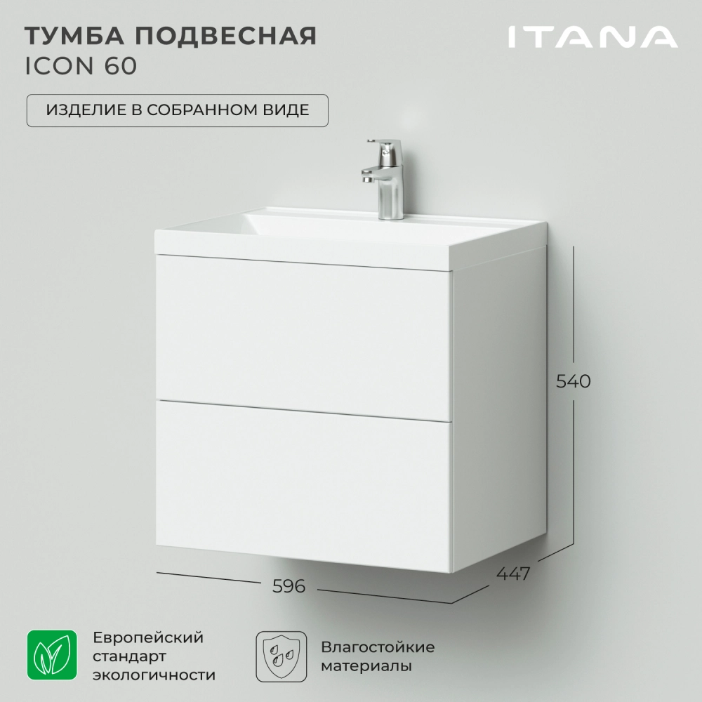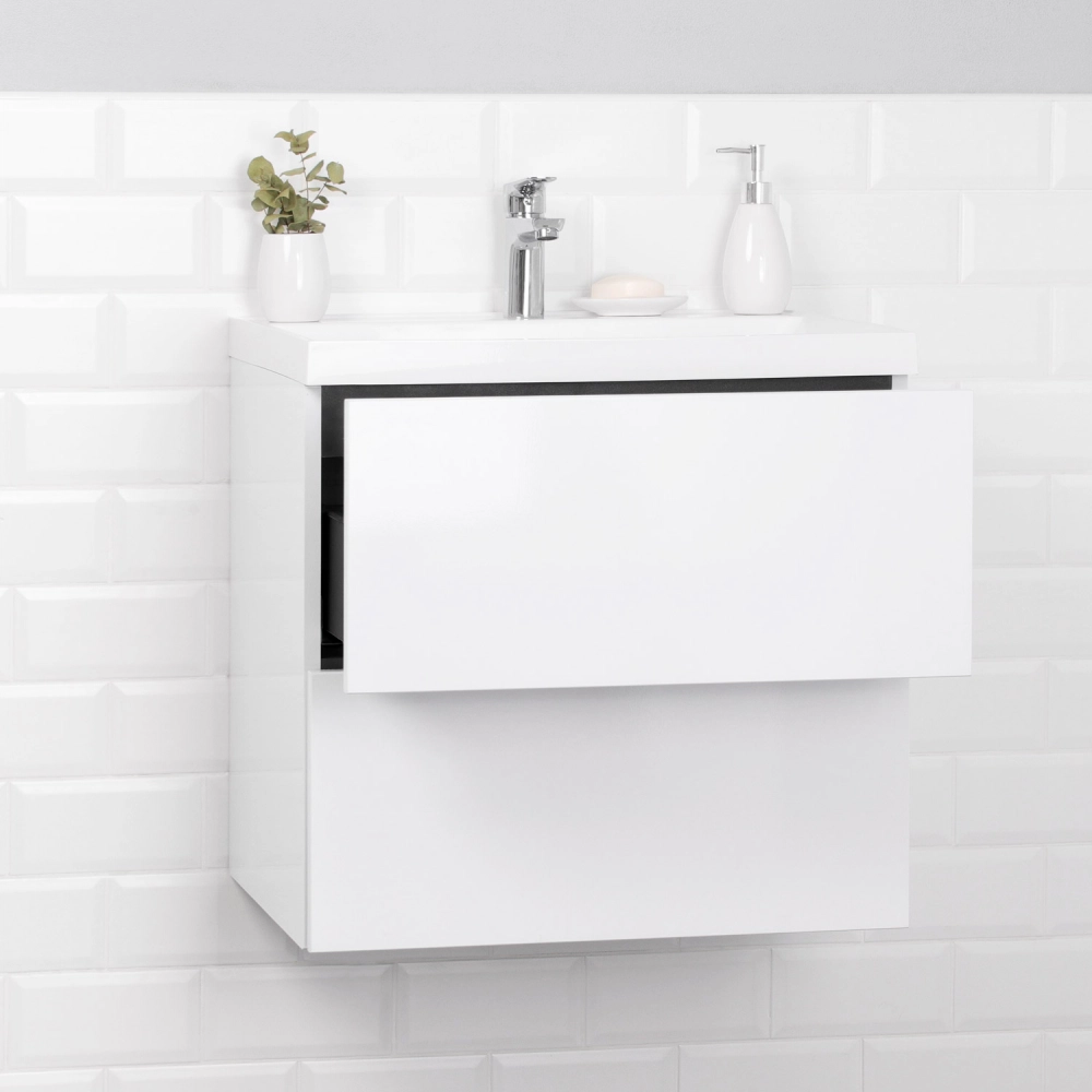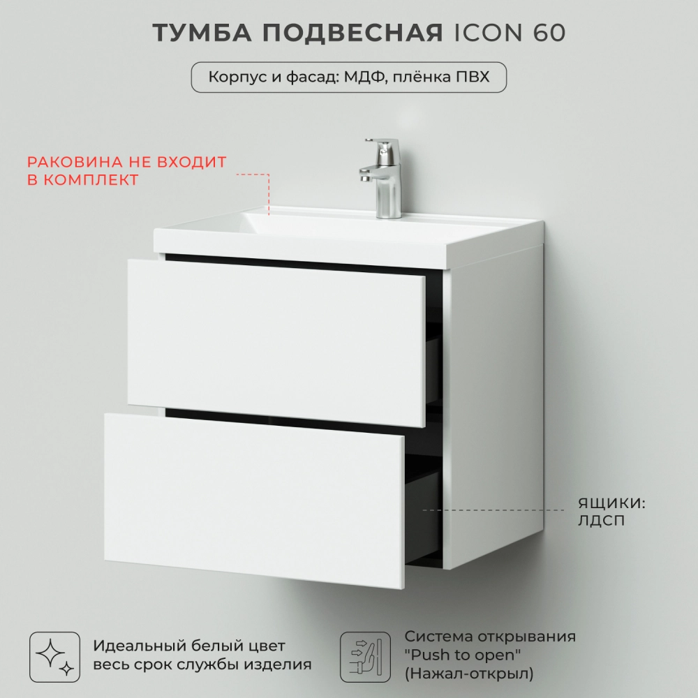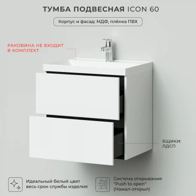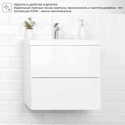 Тумба под раковину подвесная Итана Icon 60 с выдвижными ящиками Белый глянец
