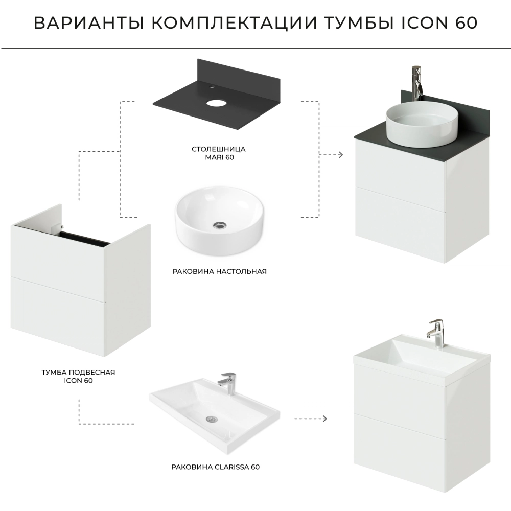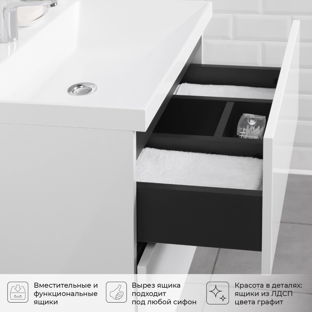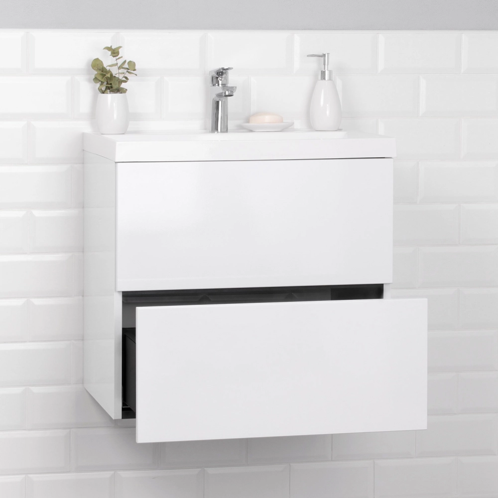 Тумба под раковину подвесная Итана Icon 60 с выдвижными ящиками Белый глянец