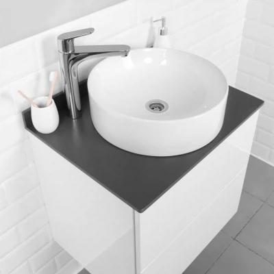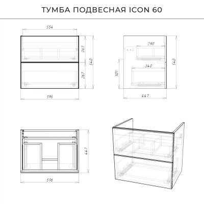 Подвесная тумба под раковину в ванную комнату из коллекции Icon - это сочетание современной стилистики и богатого функционала. Навесной способ установки тумбы в ванную дает возможность не только визуально увеличить пространство, но и обеспечивает быстрый и удобный доступ для уборки. Размеры подвесной тумбы под раковину 596х477х540 - идеальный выбор для ванной комнаты или туалета. Качественная фурнитура с доводчиками обеспечивает легкое открывание и плавное закрывание ящиков. Тумба под раковину с двумя ящиками, где можно рационально распределить и разместить все необходимые вещи для ванной комнаты. Вырез под сифон универсальный, для любого типа сифона. Для точного выбора тумбы под раковину в ванную комнату рекомендуем обратиться к схеме замеров, которая находится на фото в карточке товара, размеры изделия могут отличаться +/-1 см в связи со спецификой производства. Тумба под раковину для ванной доставляется в предварительно собранном виде, надежно упакована.