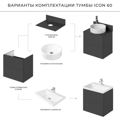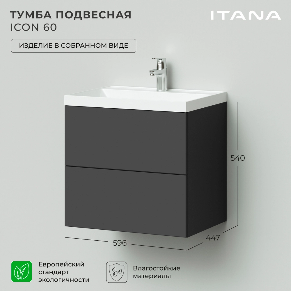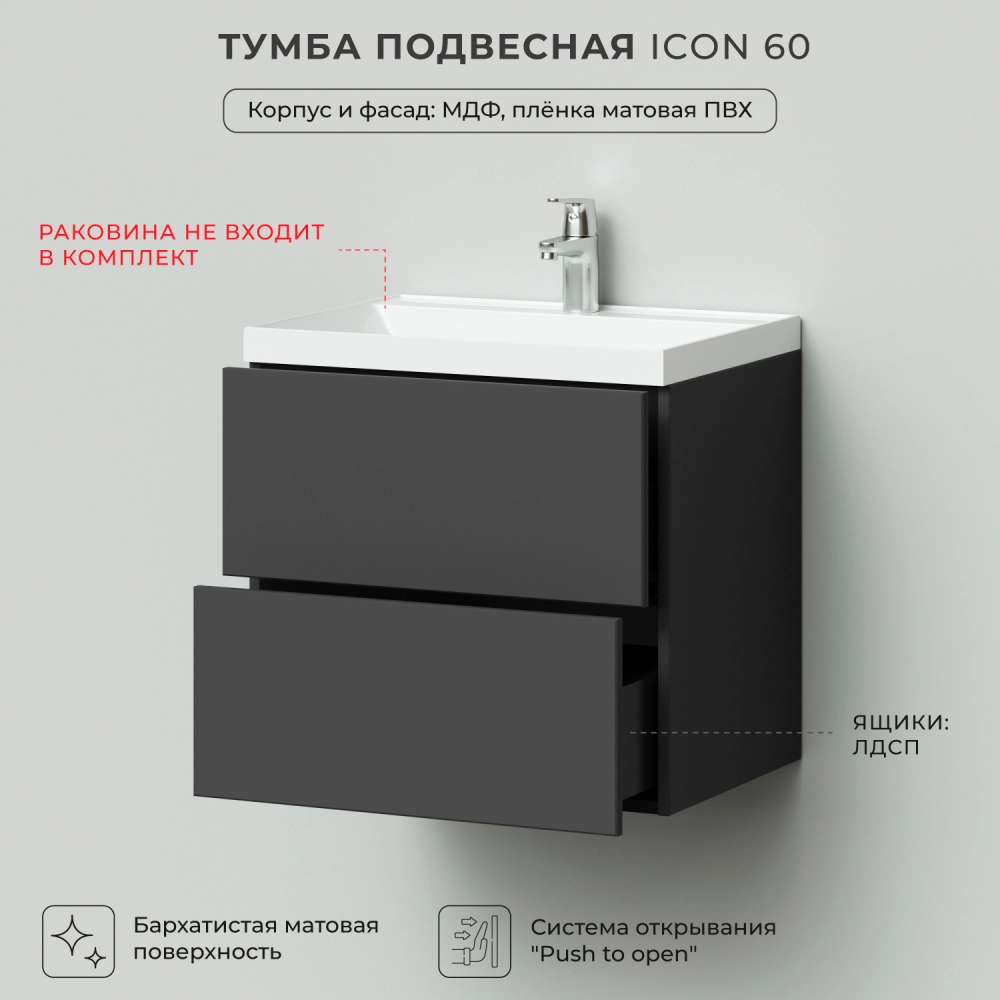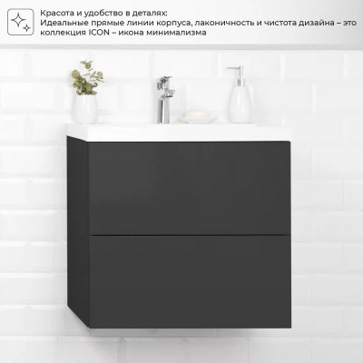 Тумба под раковину подвесная Итана Icon 60 с выдвижными ящиками Графит