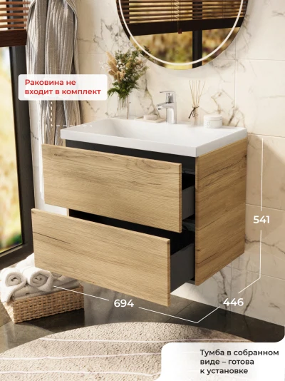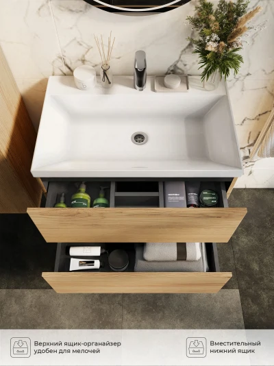 Тумба под раковину подвесная Итана Icon 70 с выдвижными ящиками Дуб Мавелла Голд