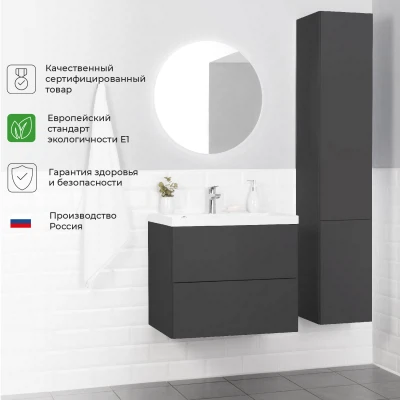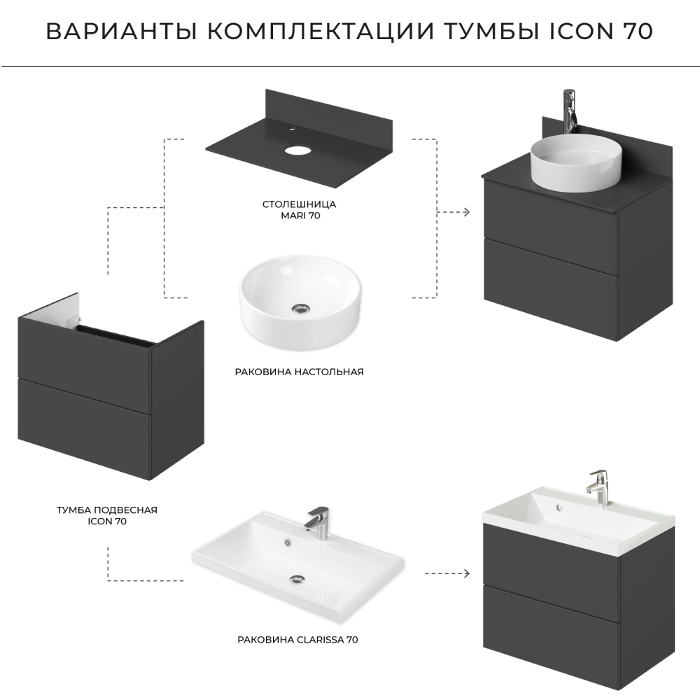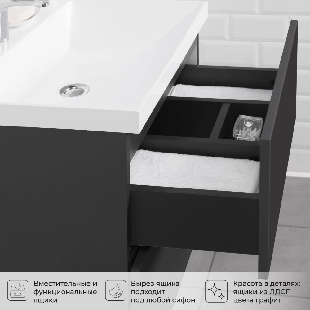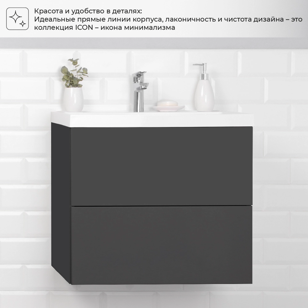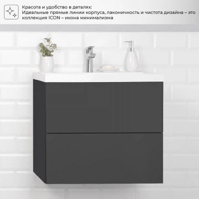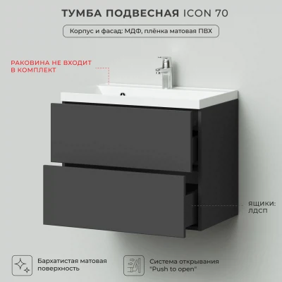 Тумба под раковину подвесная Итана Icon 70 с выдвижными ящиками Графит