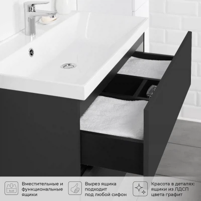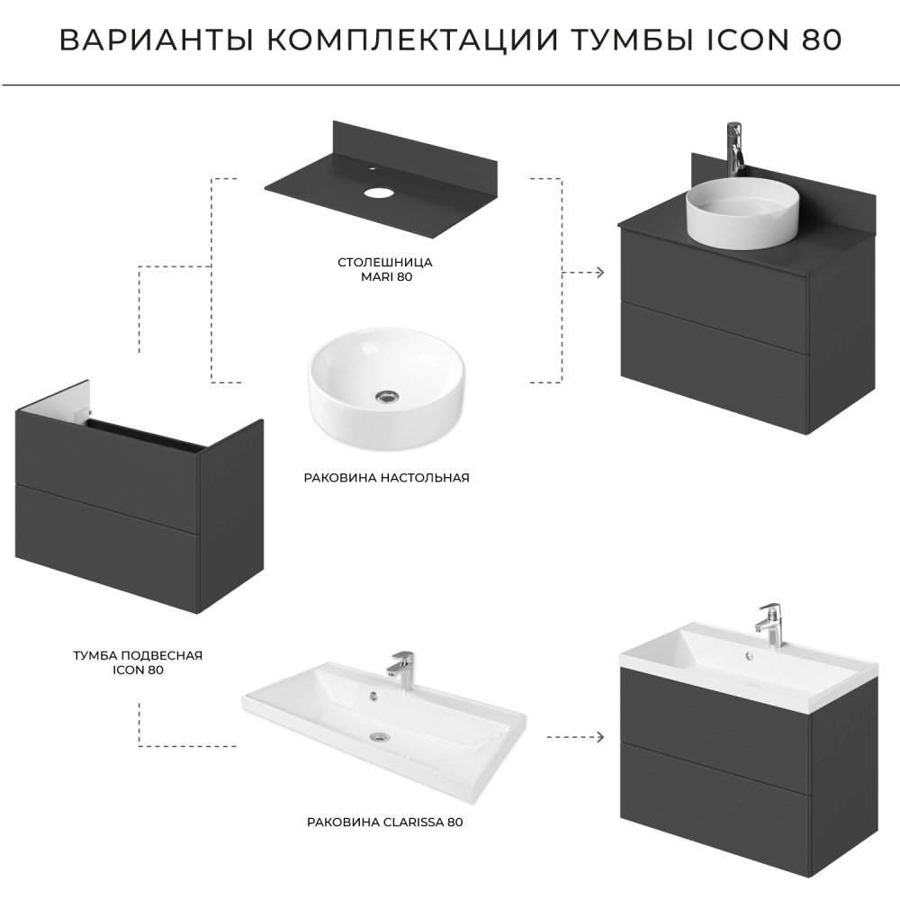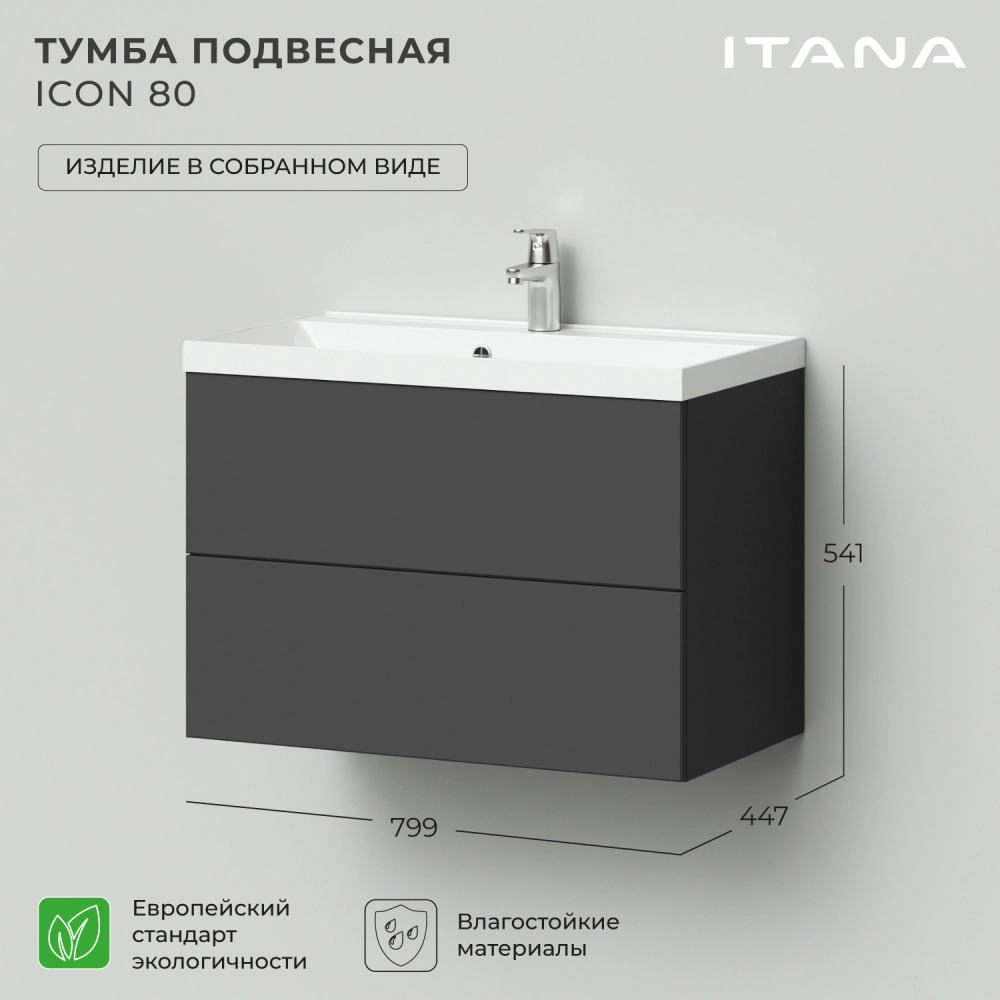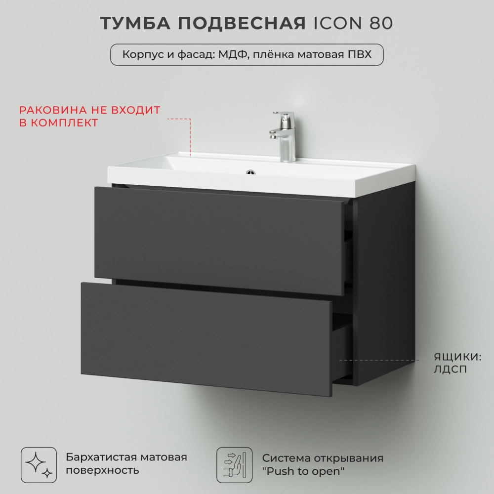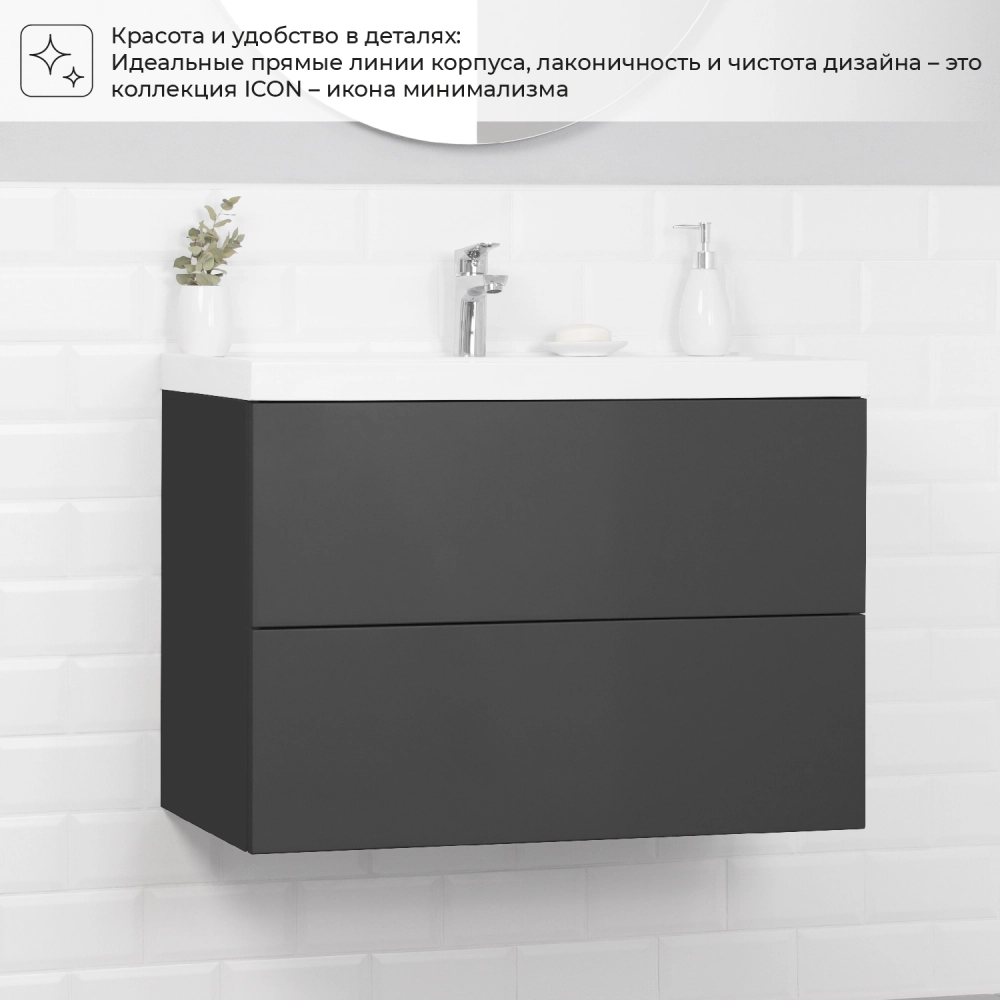 Тумба под раковину подвесная Итана Icon 80 с выдвижными ящиками Графит