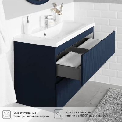 Подвесная тумба под раковину из коллекции Kate станет настоящим украшением ванной комнаты в современном стиле. Навесной способ установки тумбы в ванную дает возможность не только визуально увеличить пространство, но и обеспечивает быстрый и удобный доступ для уборки. Размеры подвесной тумбы под раковину 982*436*600 - идеальный выбор для ванной комнаты или туалета. Тумба для ванны изготовлена из МДФ и покрыта ПВХ пленкой, поэтому выдерживает высокие эксплуатационные нагрузки. Качественная фурнитура с доводчиками обеспечивает легкое открывание и плавное закрывание ящиков. Вырез под сифон универсальный, для любого типа. Благодаря своей конструкции тумба обеспечивает удобный доступ к раковине и позволяет скрыть коммуникации. Тумба под раковину в ванную оснащена двумя удобными ящиками для хранения, что позволяет разместить всё необходимое под рукой. Для точного выбора тумбы под раковину в ванную комнату рекомендуем обратиться к схеме замеров, которая находится на фото в карточке товара, размеры изделия могут отличаться +/-1 см в связи со спецификой производства. Тумба для ванной доставляется в предварительно собранном виде, надежно упакована.
