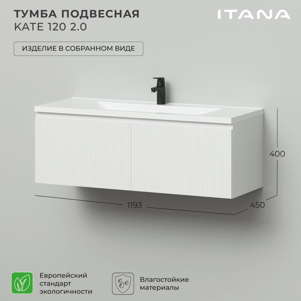 Тумба под раковину подвесная Итана Kate 2.0 120 с выдвижными ящиками Бланж