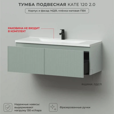 Тумба под раковину подвесная Итана Kate 2.0 120 с выдвижными ящиками Токио