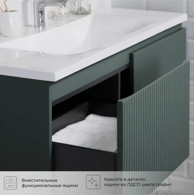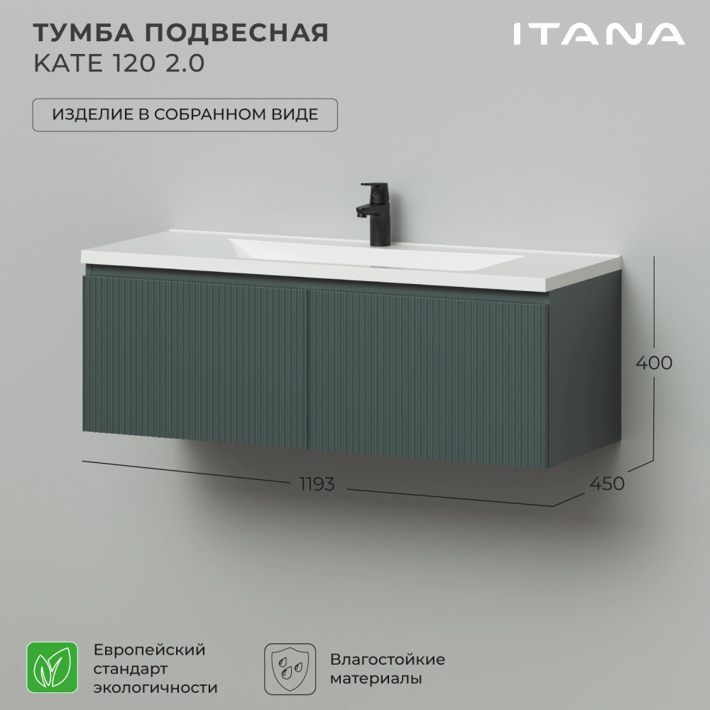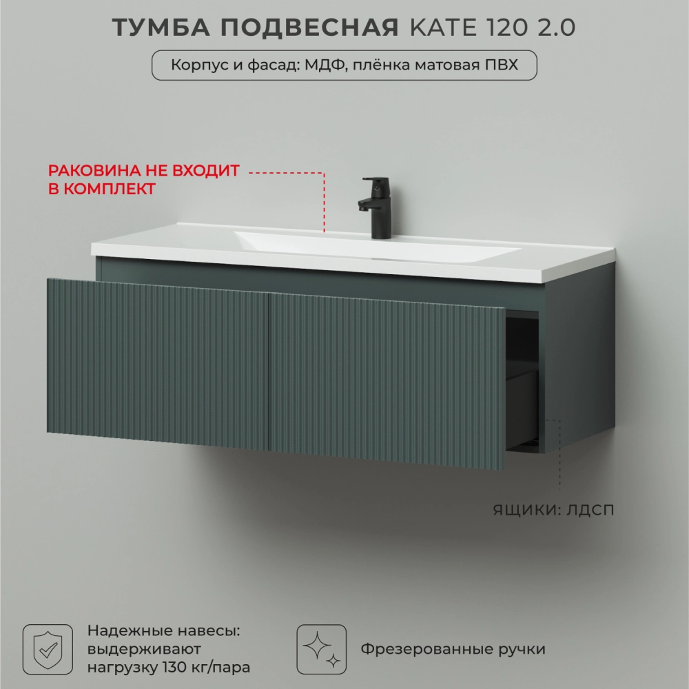 Тумба под раковину подвесная Итана Kate 2.0 120 с выдвижными ящиками Велютто Авокадо