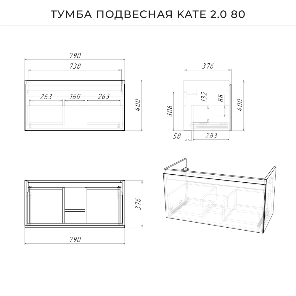 Подвесная тумба под раковину из коллекции Kate станет настоящим украшением ванной комнаты в современном стиле. Навесной способ установки тумбы в ванную дает возможность не только визуально увеличить пространство, но и обеспечивает быстрый и удобный доступ для уборки. Размеры подвесной тумбы под раковину 790*376*440 - идеальный выбор для ванной комнаты или туалета. Тумба для ванны изготовлена из МДФ и покрыта ПВХ пленкой, поэтому выдерживает высокие эксплуатационные нагрузки. Качественная фурнитура с доводчиками обеспечивает легкое открывание и плавное закрывание ящиков. Вырез под сифон универсальный, для любого типа. Благодаря своей конструкции тумба обеспечивает удобный доступ к раковине и позволяет скрыть коммуникации. Тумба под раковину в ванную оснащена удобным ящиком для хранения, что позволяет разместить всё необходимое под рукой. Для точного выбора тумбы под раковину в ванную комнату рекомендуем обратиться к схеме замеров, которая находится на фото в карточке товара, размеры изделия могут отличаться +/-1 см в связи со спецификой производства. Тумба для ванной доставляется в предварительно собранном виде, надежно упакована.
