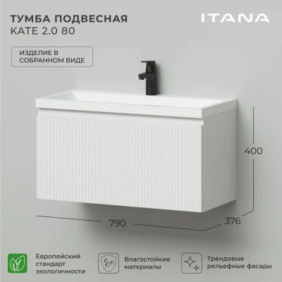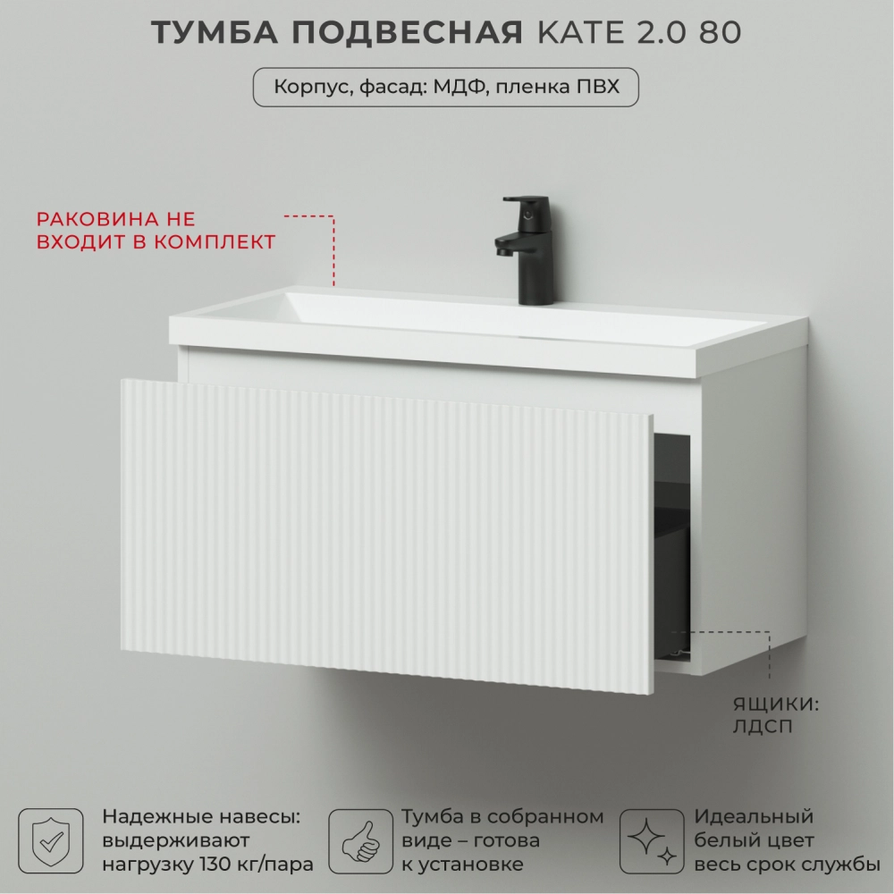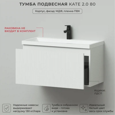 Тумба под раковину подвесная Итана Kate 2.0 80 с выдвижным ящиком Бланж