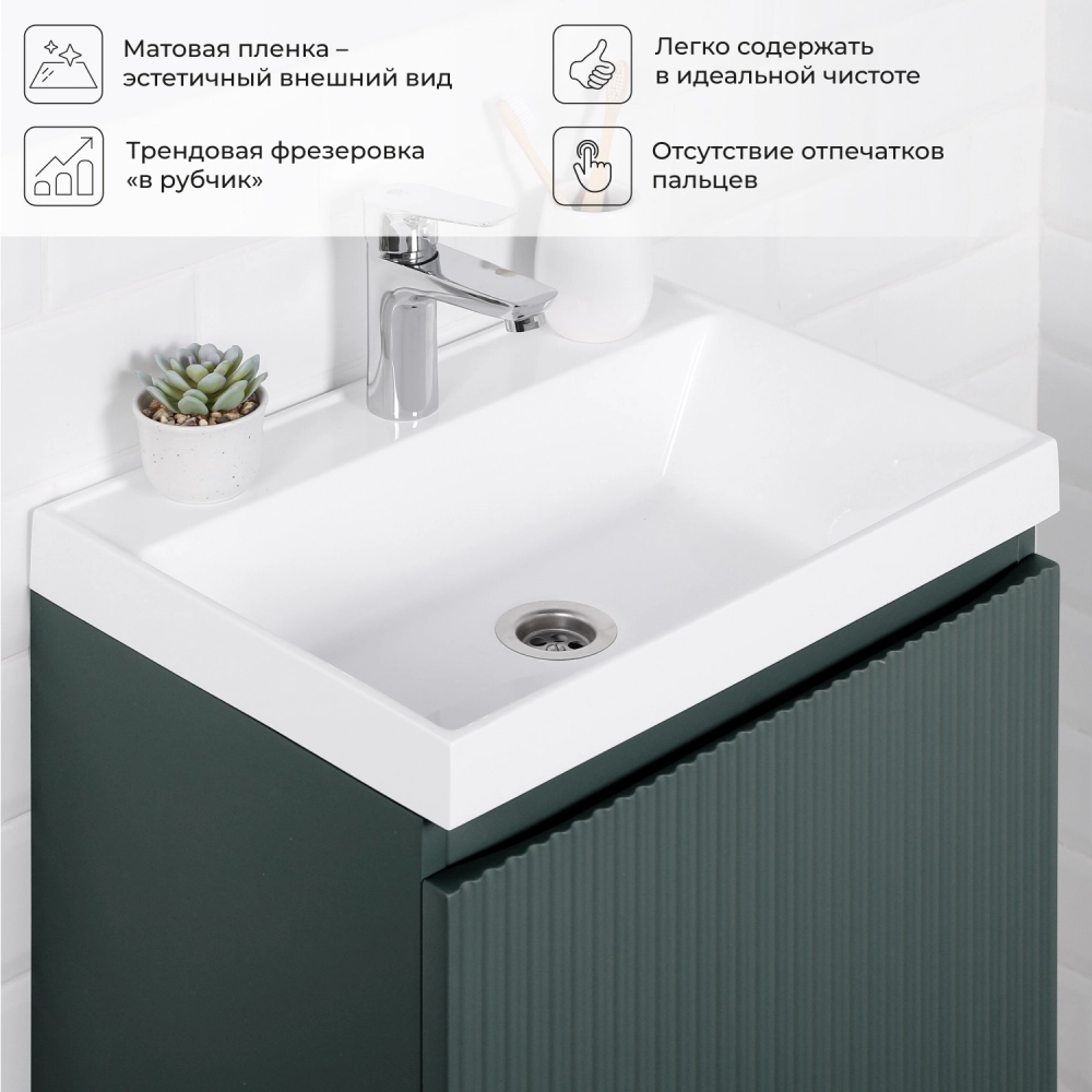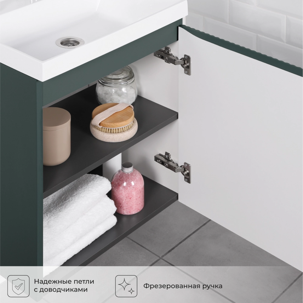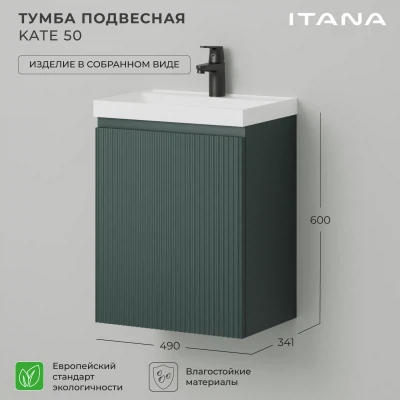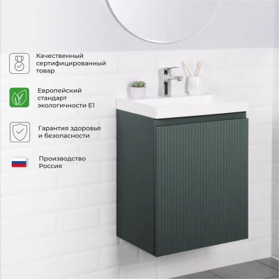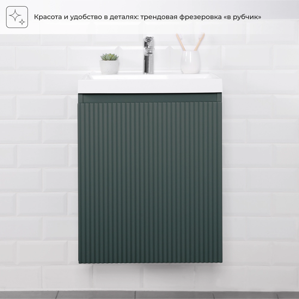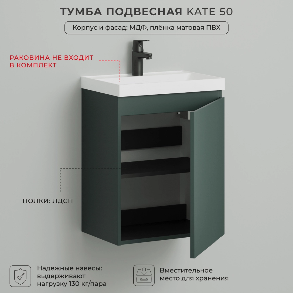 Тумба под раковину подвесная Итана Kate 50 с распашной дверцей правая Велютто Авокадо