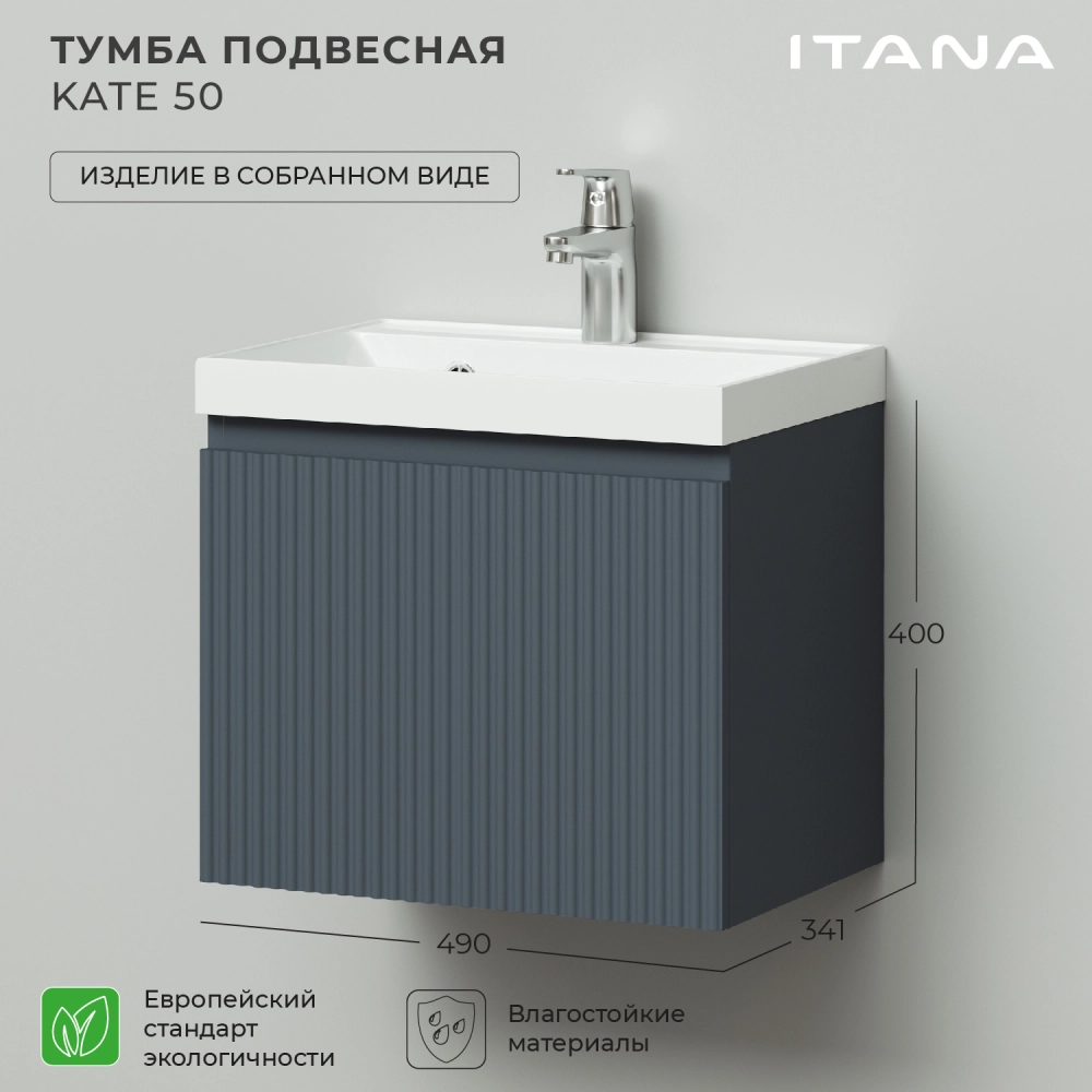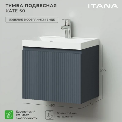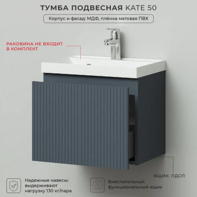 Тумба под раковину подвесная Итана Kate 50 с выдвижным ящиком Антрацит