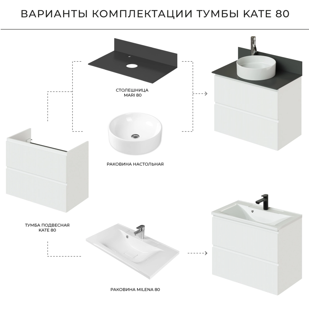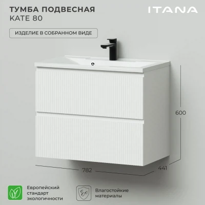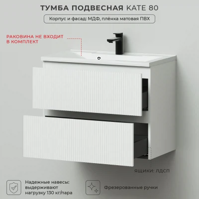 Тумба под раковину подвесная Итана Kate 80 с выдвижными ящиками Бланж
