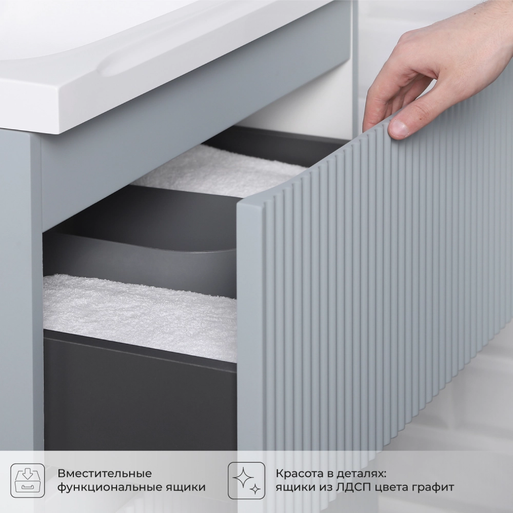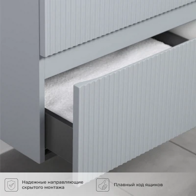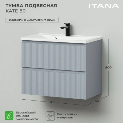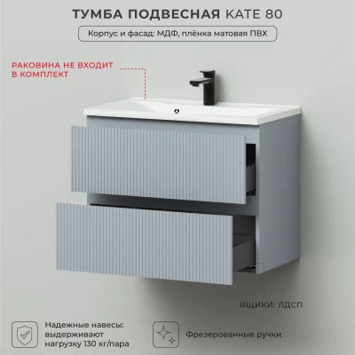 Подвесная тумба под раковину из коллекции Kate станет настоящим украшением ванной комнаты в современном стиле. Навесной способ установки тумбы в ванную дает возможность не только визуально увеличить пространство, но и обеспечивает быстрый и удобный доступ для уборки. Размеры подвесной тумбы под раковину 782*441*600 - идеальный выбор для ванной комнаты или туалета. Тумба для ванны изготовлена из МДФ и покрыта ПВХ пленкой, поэтому выдерживает высокие эксплуатационные нагрузки. Качественная фурнитура с доводчиками обеспечивает легкое открывание и плавное закрывание ящиков. Вырез под сифон универсальный, для любого типа. Благодаря своей конструкции тумба обеспечивает удобный доступ к раковине и позволяет скрыть коммуникации. Тумба под раковину в ванную оснащена двумя удобными ящиками для хранения, что позволяет разместить всё необходимое под рукой. Для точного выбора тумбы под раковину в ванную комнату рекомендуем обратиться к схеме замеров, которая находится на фото в карточке товара, размеры изделия могут отличаться +/-1 см в связи со спецификой производства. Тумба для ванной доставляется в предварительно собранном виде, надежно упакована.