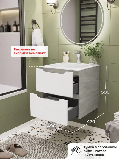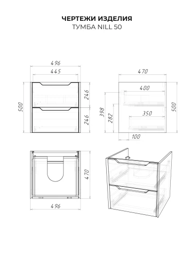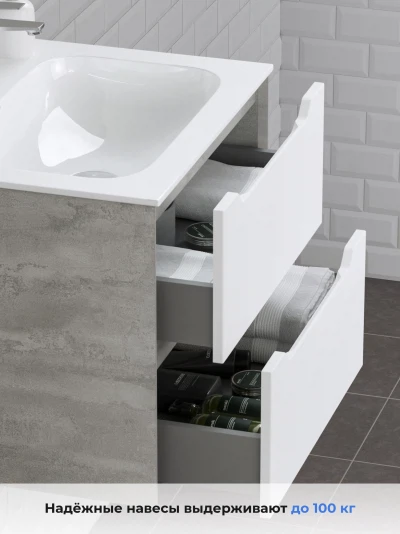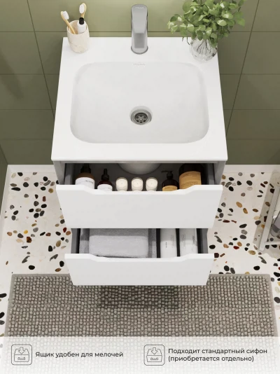 Тумба под раковину подвесная Итана Nill 50 с выдвижными ящиками Белый глянец