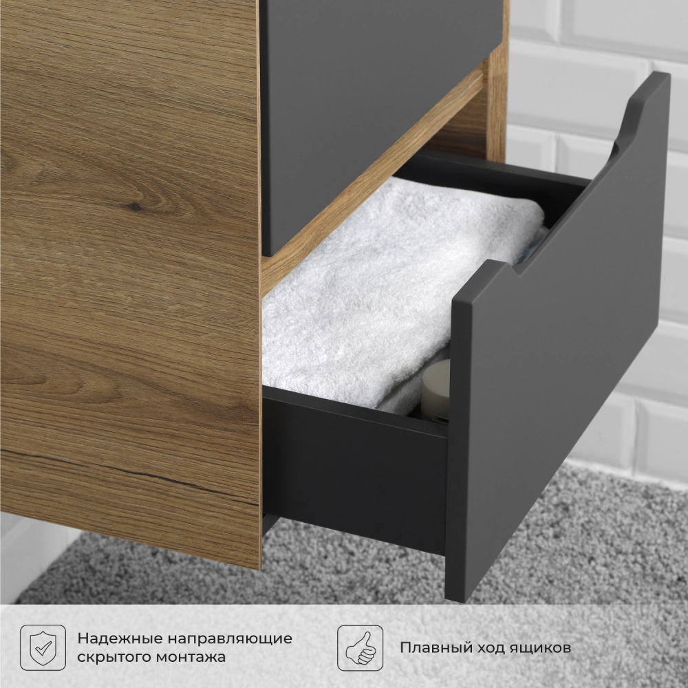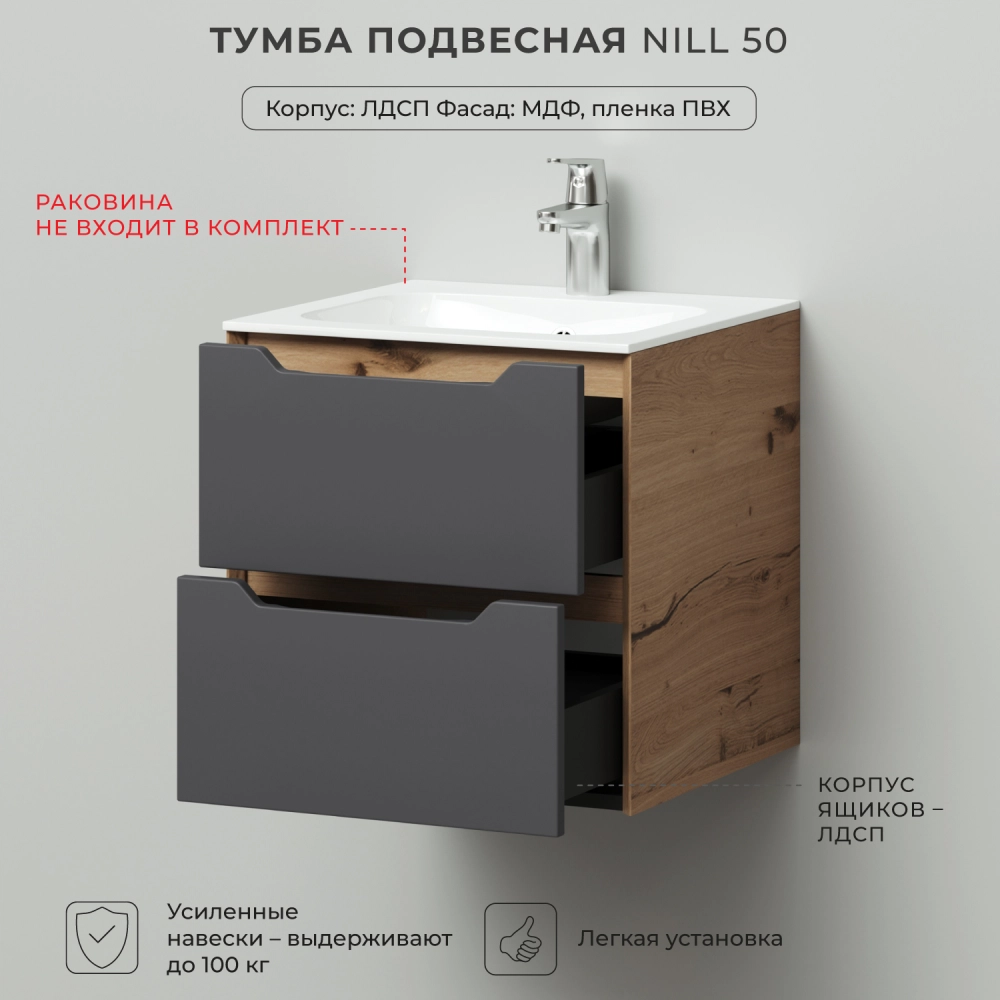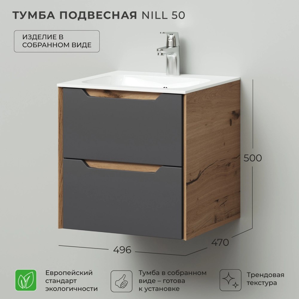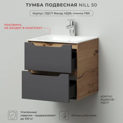 Тумба под раковину подвесная Итана Nill 50 с выдвижными ящиками Графит