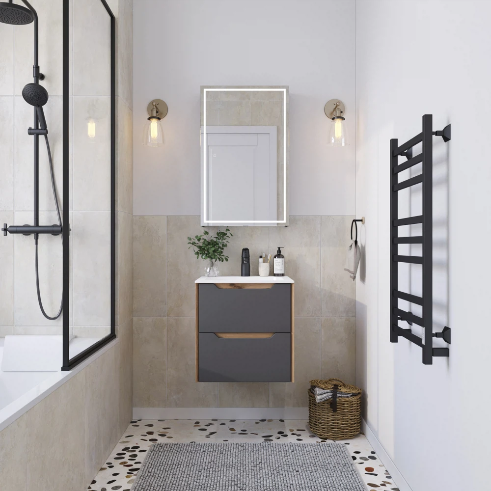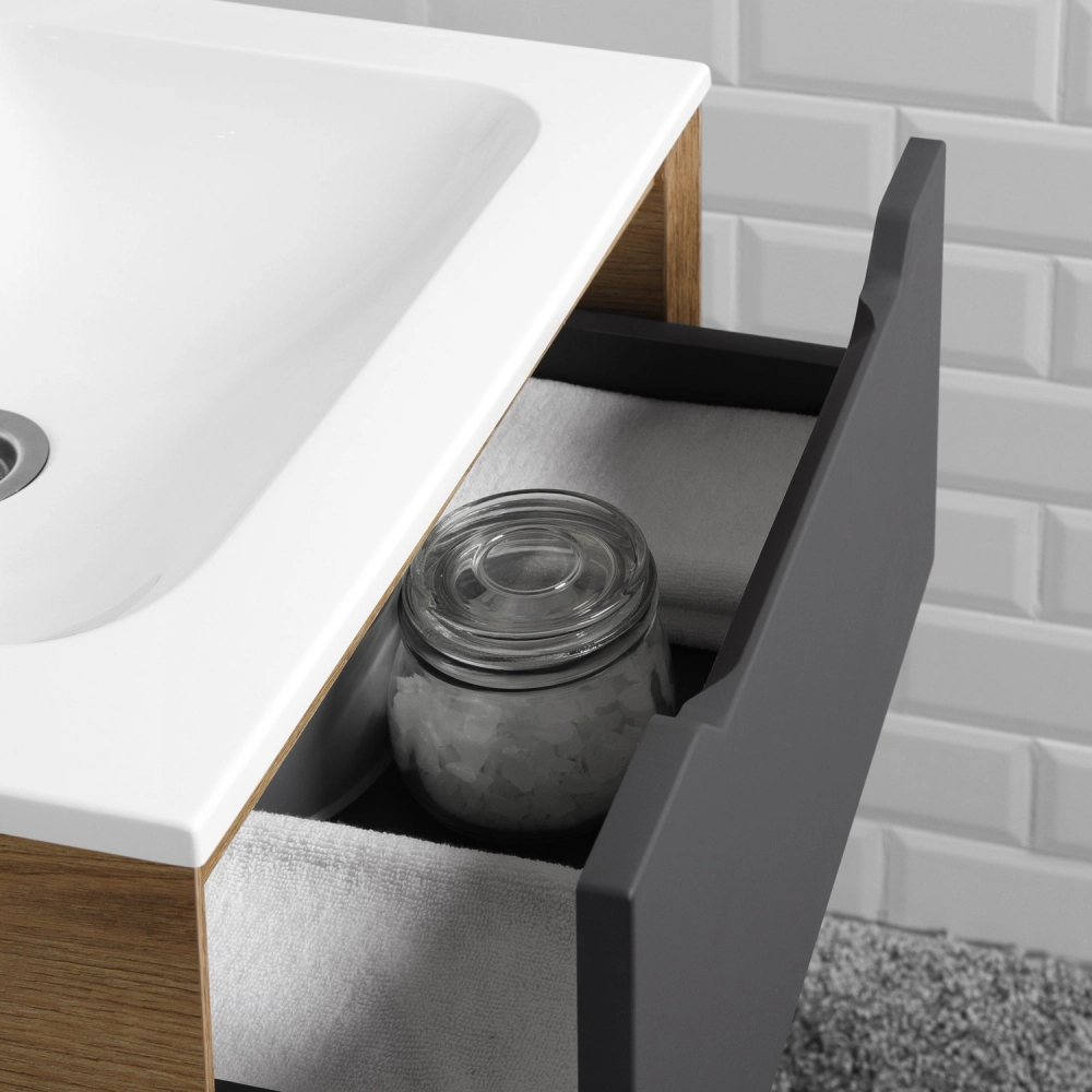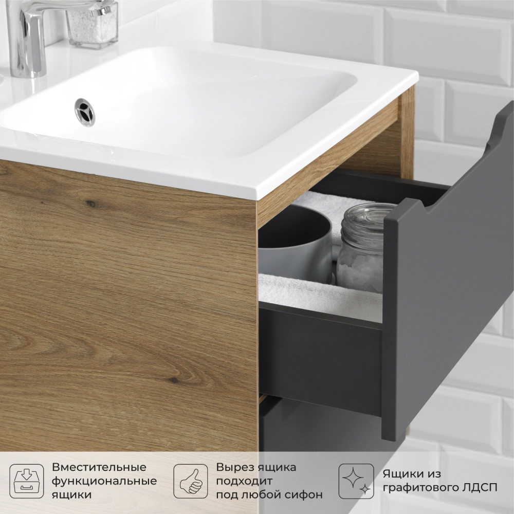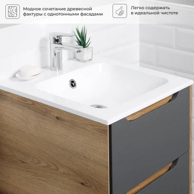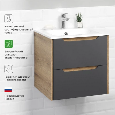 Тумба под раковину подвесная Итана Nill 50 с выдвижными ящиками Графит