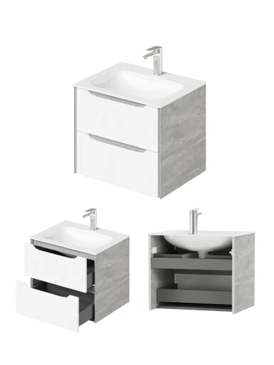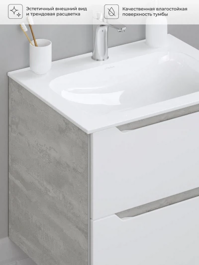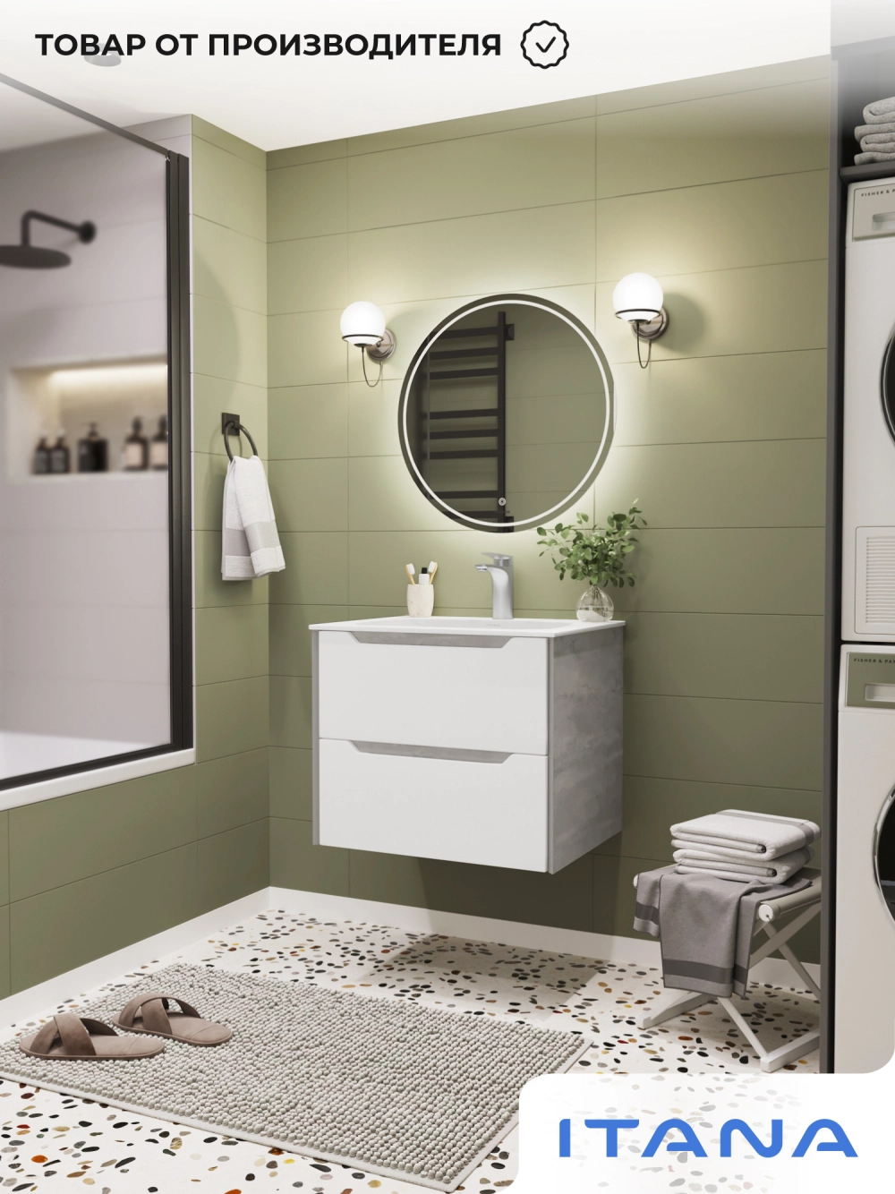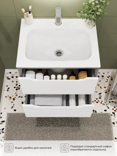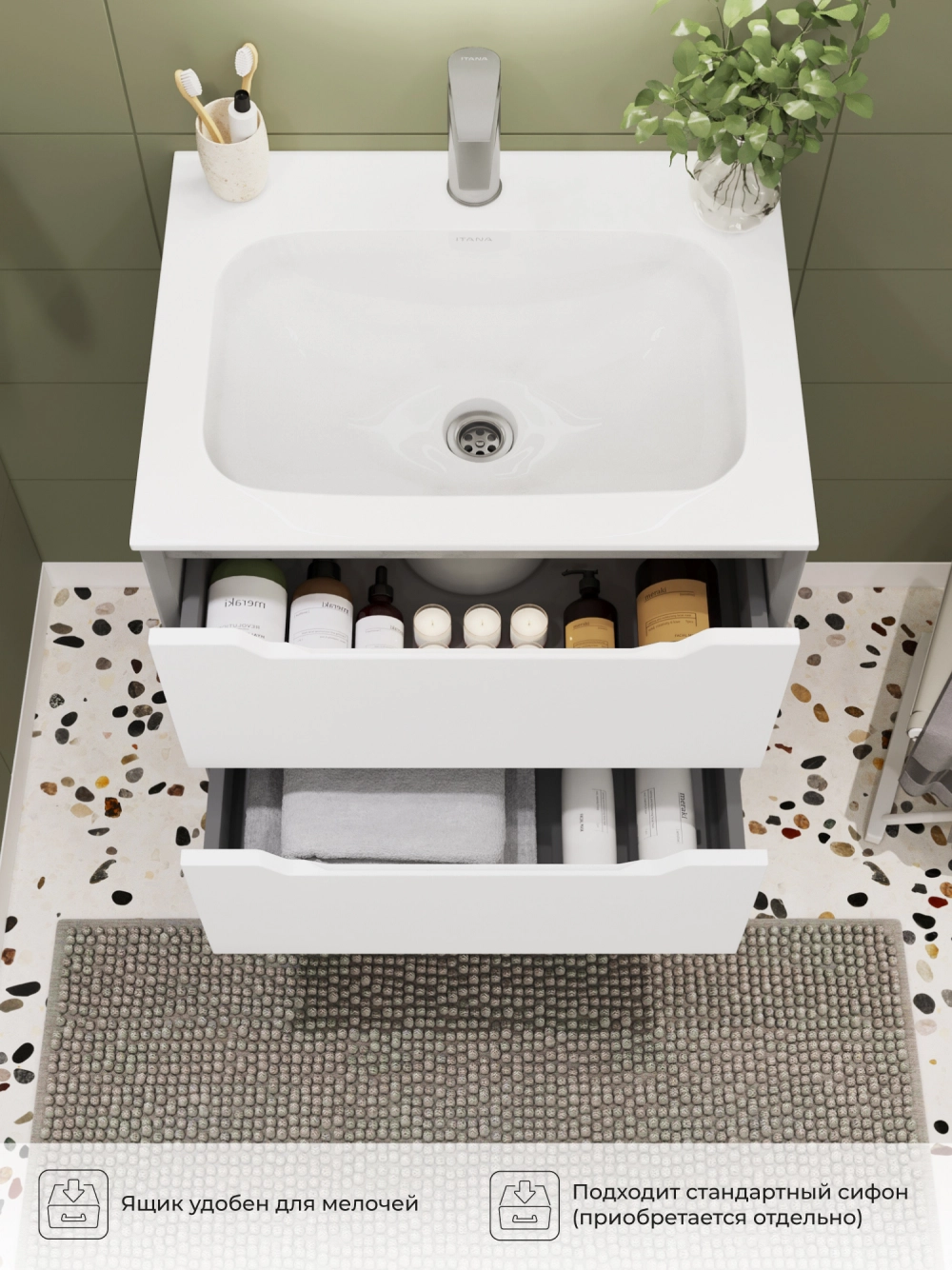 Тумба под раковину подвесная Итана Nill 60 с выдвижными ящиками Белый глянец