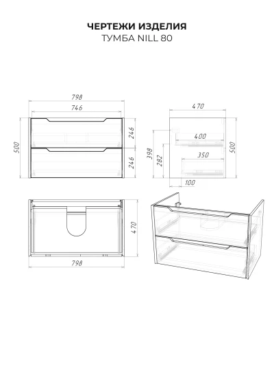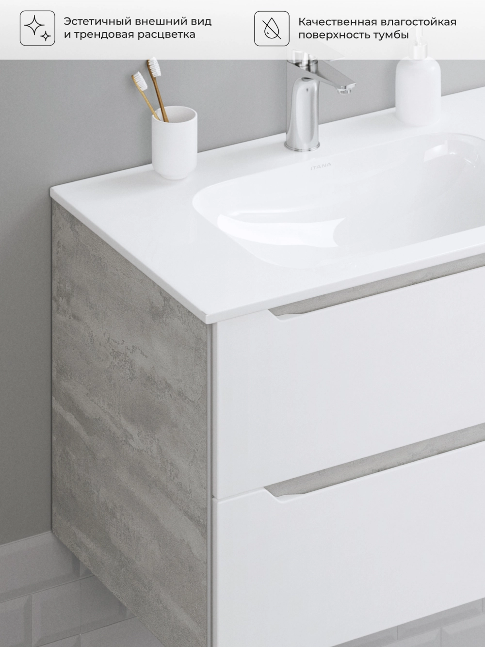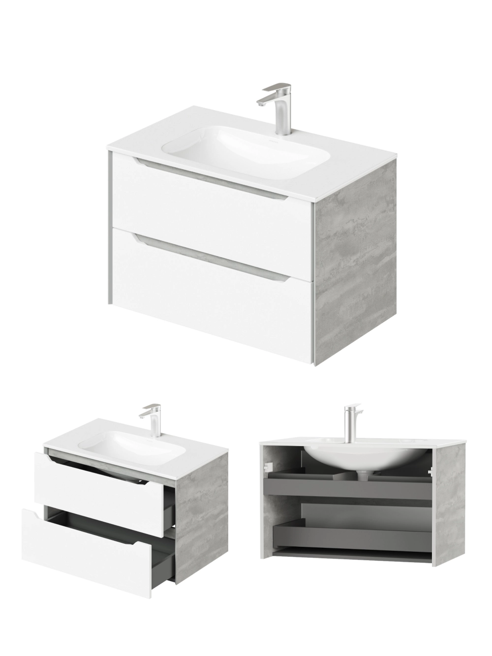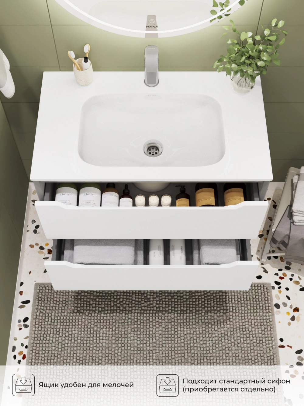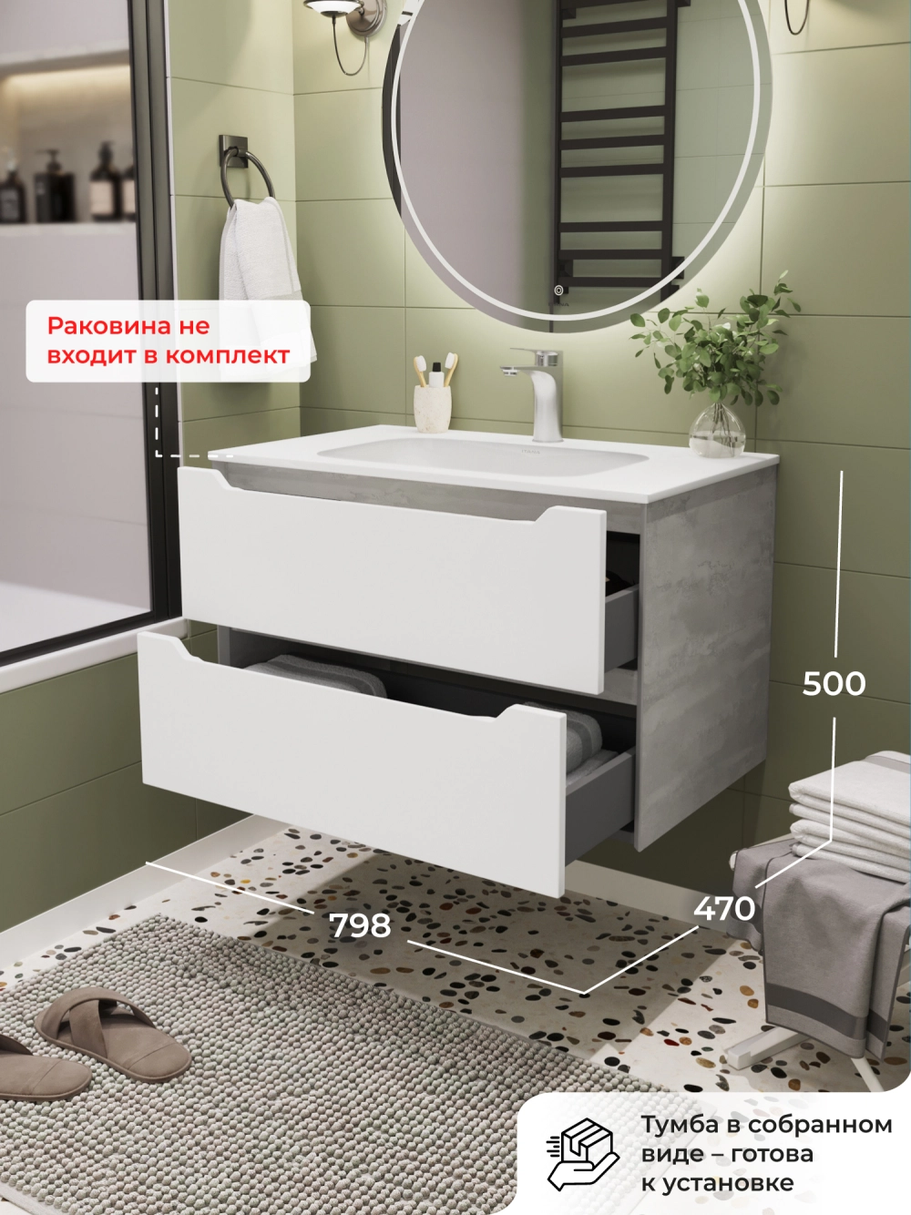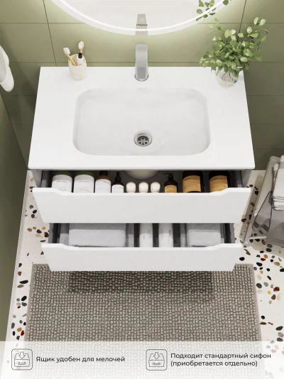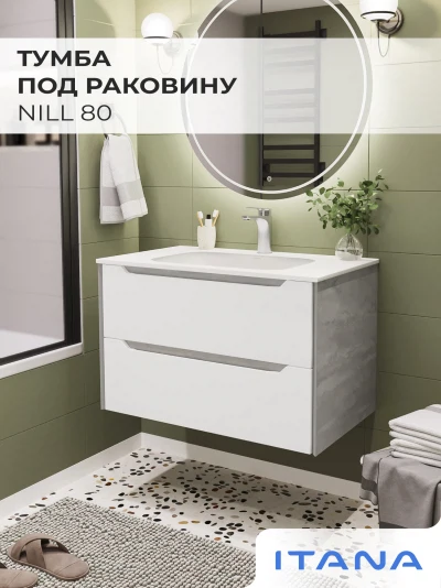Тумба под раковину подвесная Итана Nill 80 с выдвижными ящиками Белый глянец