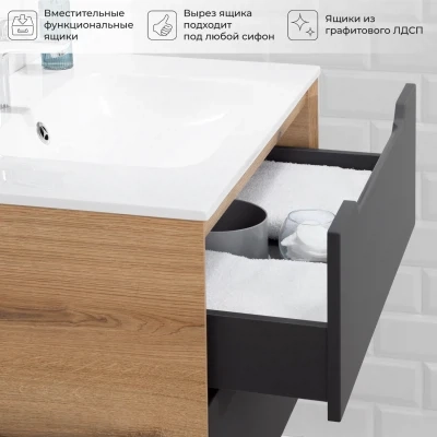 Тумба под раковину подвесная Итана Nill 80 с выдвижными ящиками Графит