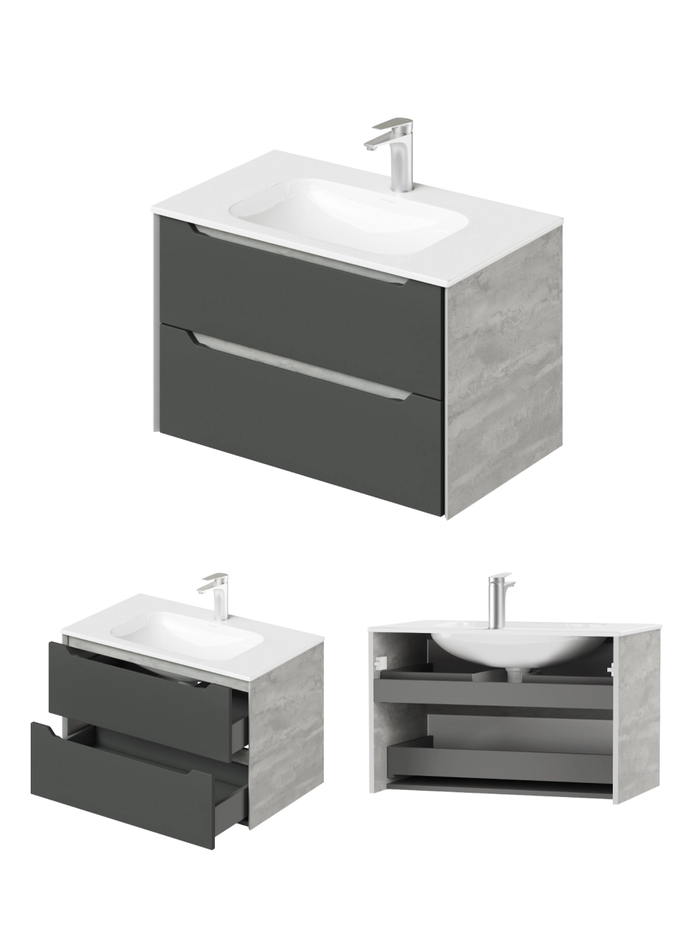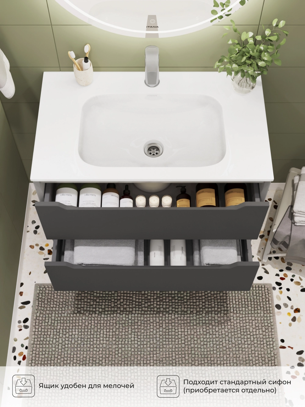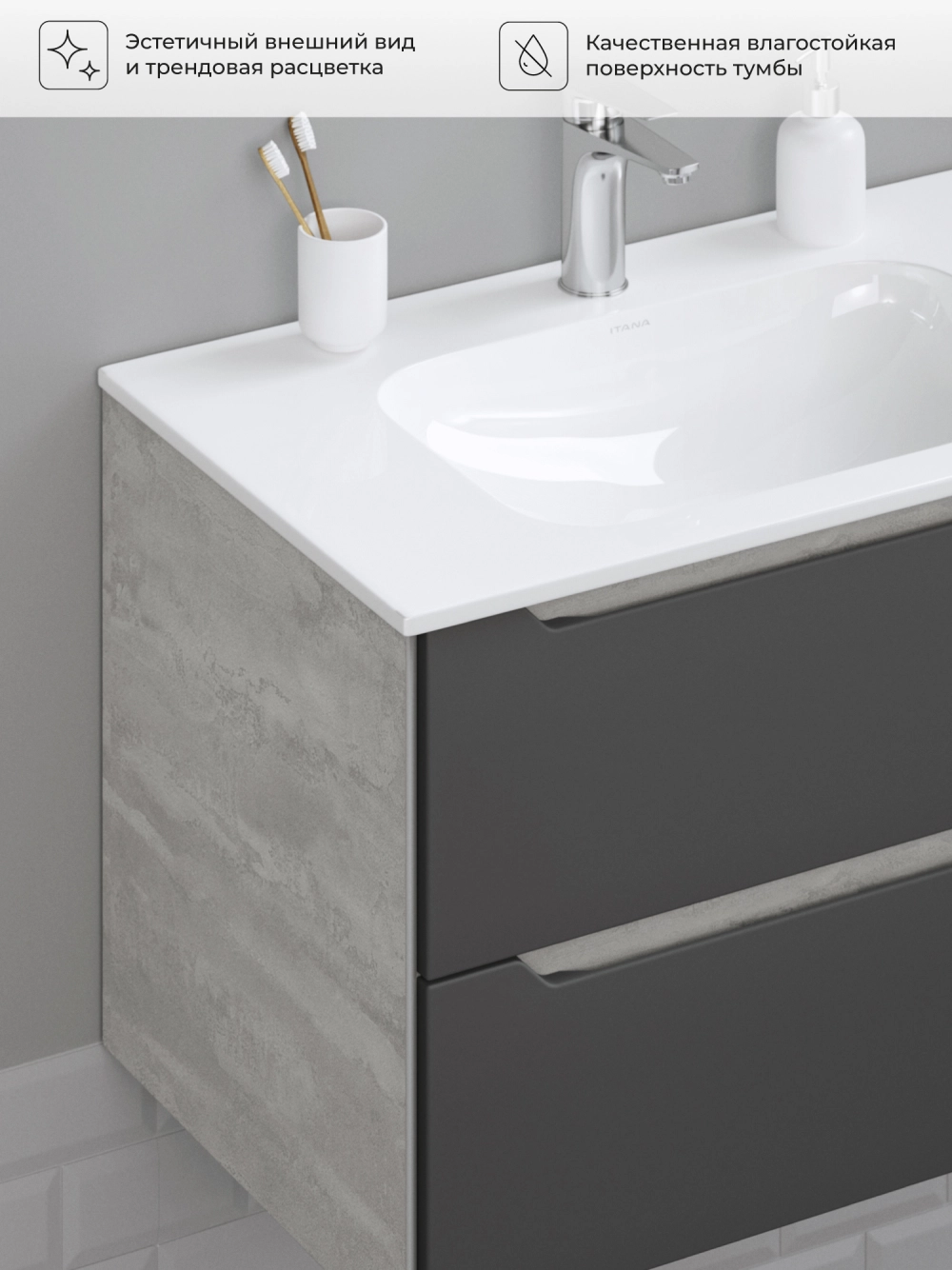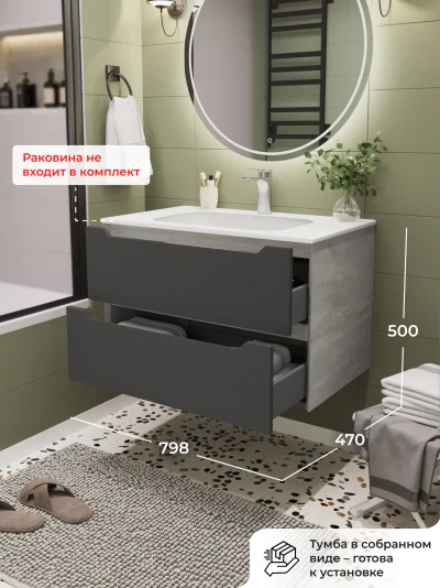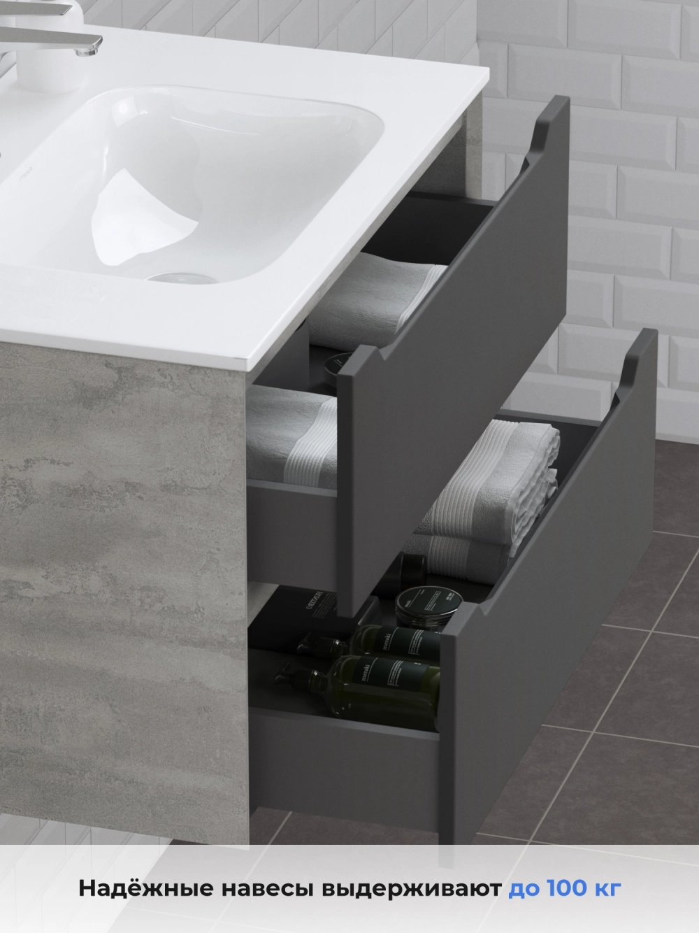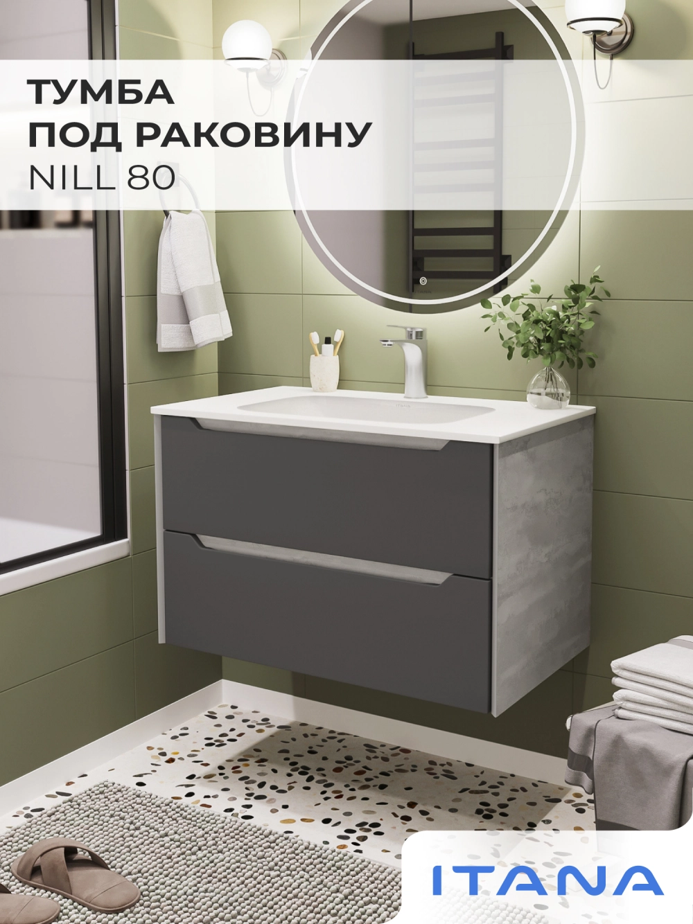Тумба под раковину подвесная Итана Nill 80 с выдвижными ящиками Графит
