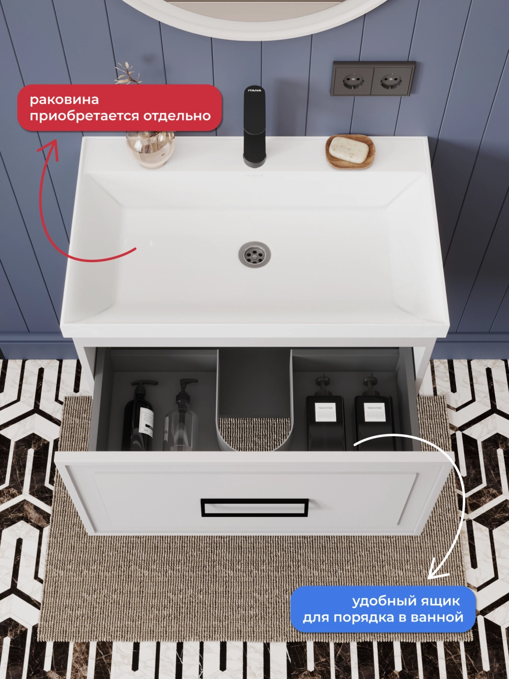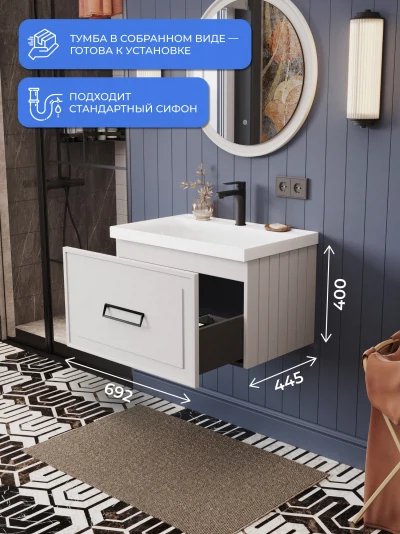 Тумба под раковину подвесная Итана Pino 2.0 70 с выдвижным ящиком Керамик