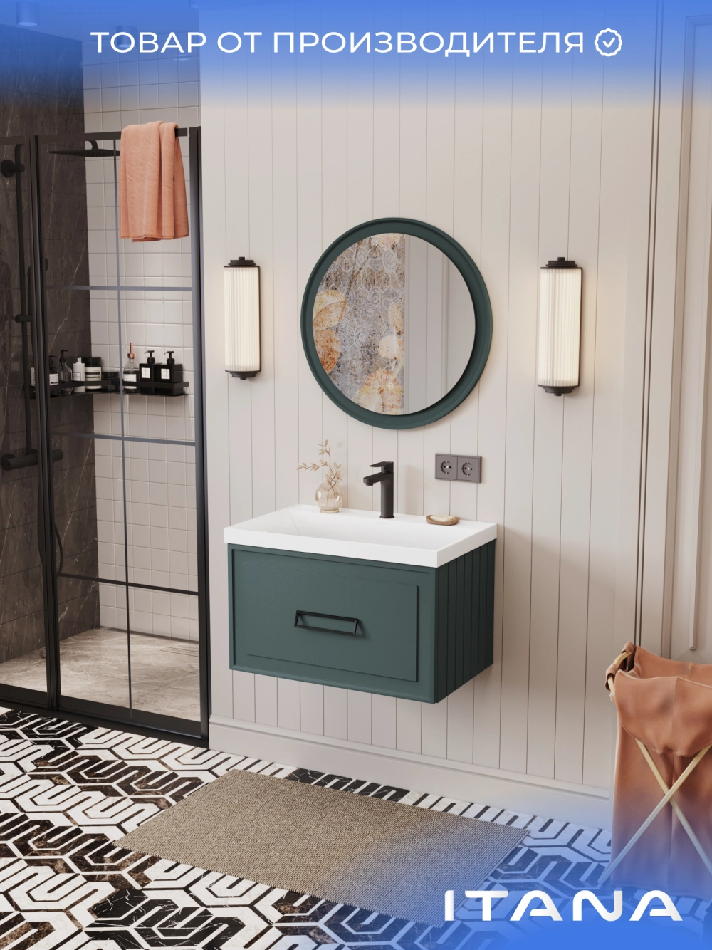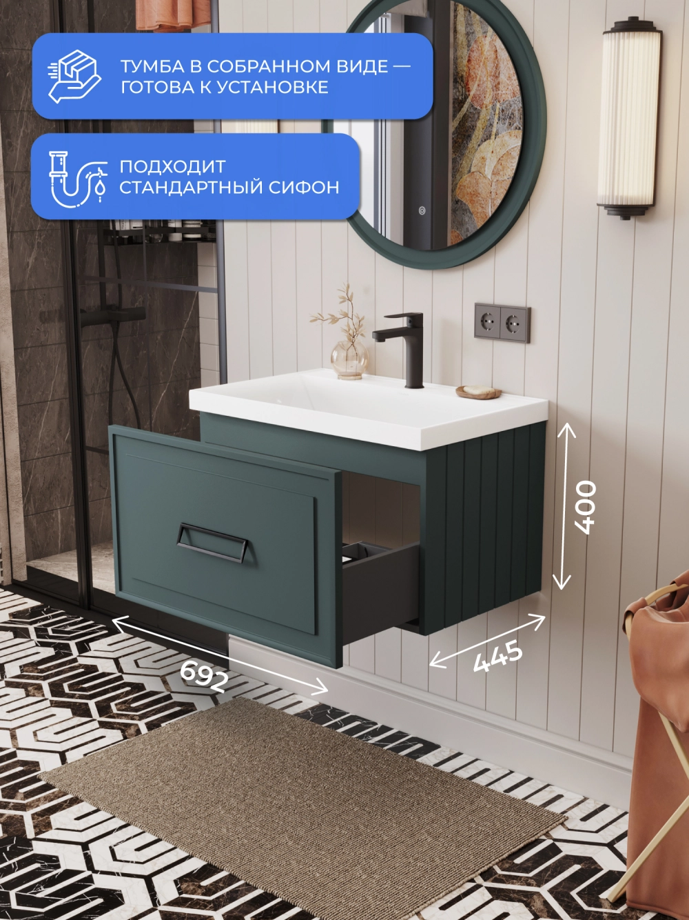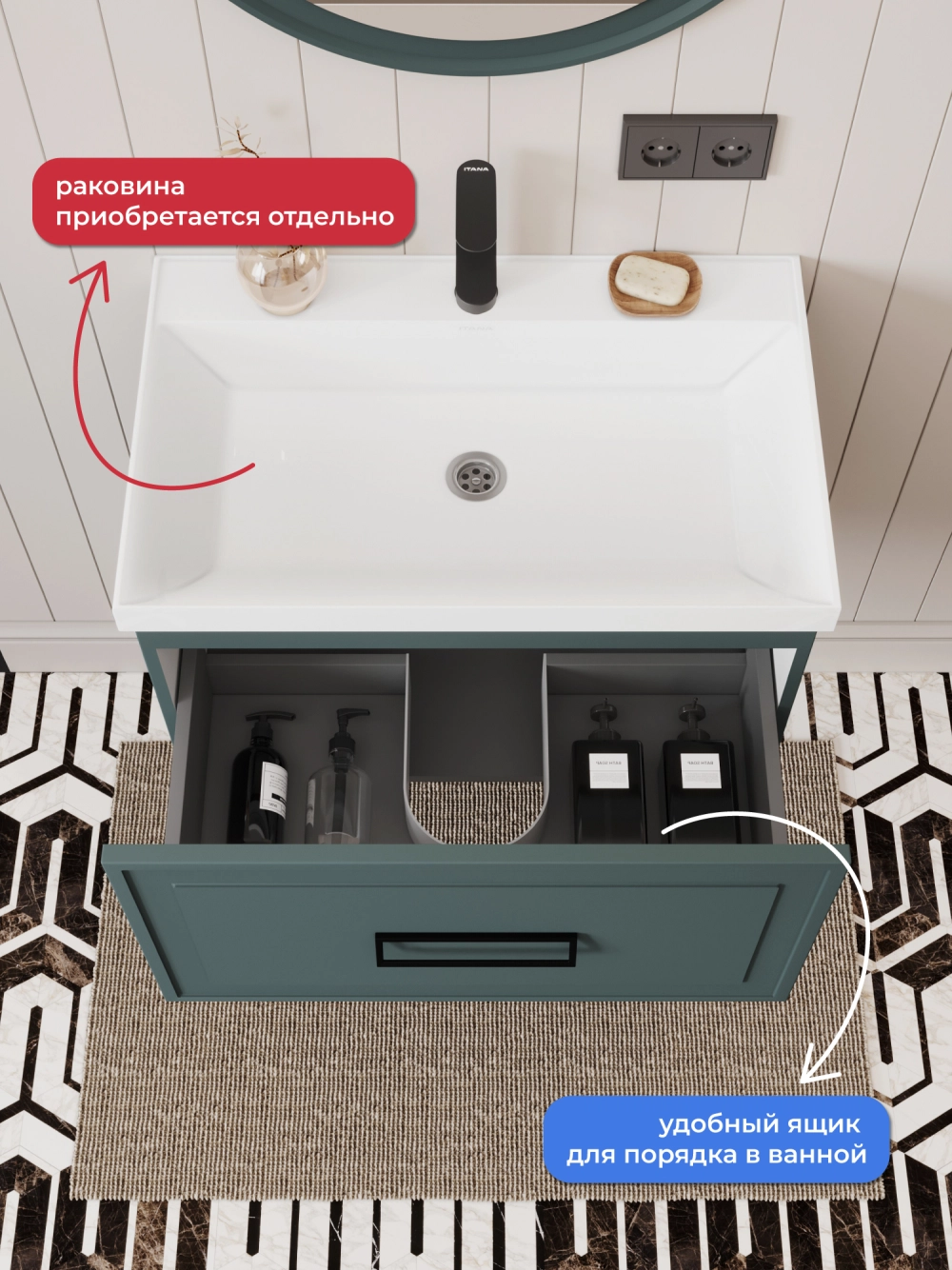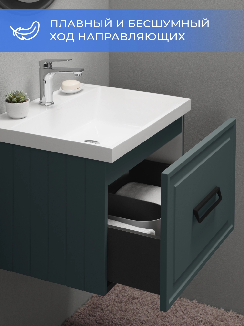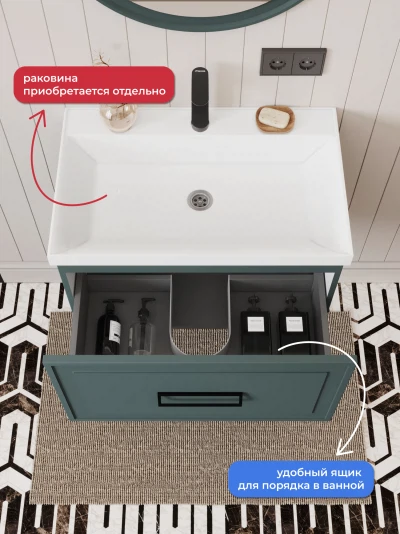 Тумба под раковину подвесная Итана Pino 2.0 70 с выдвижным ящиком Веллюто Авокадо