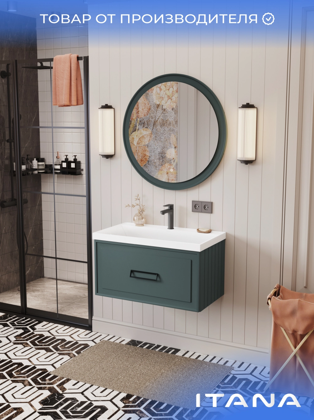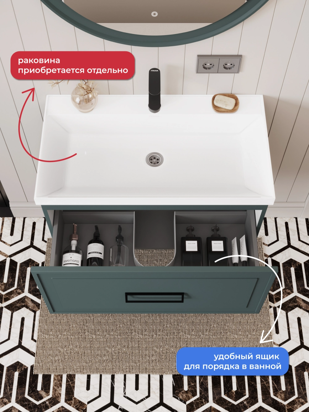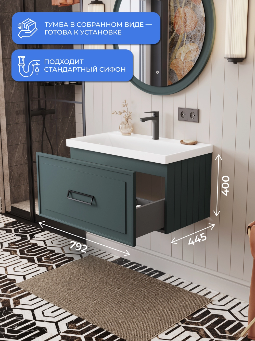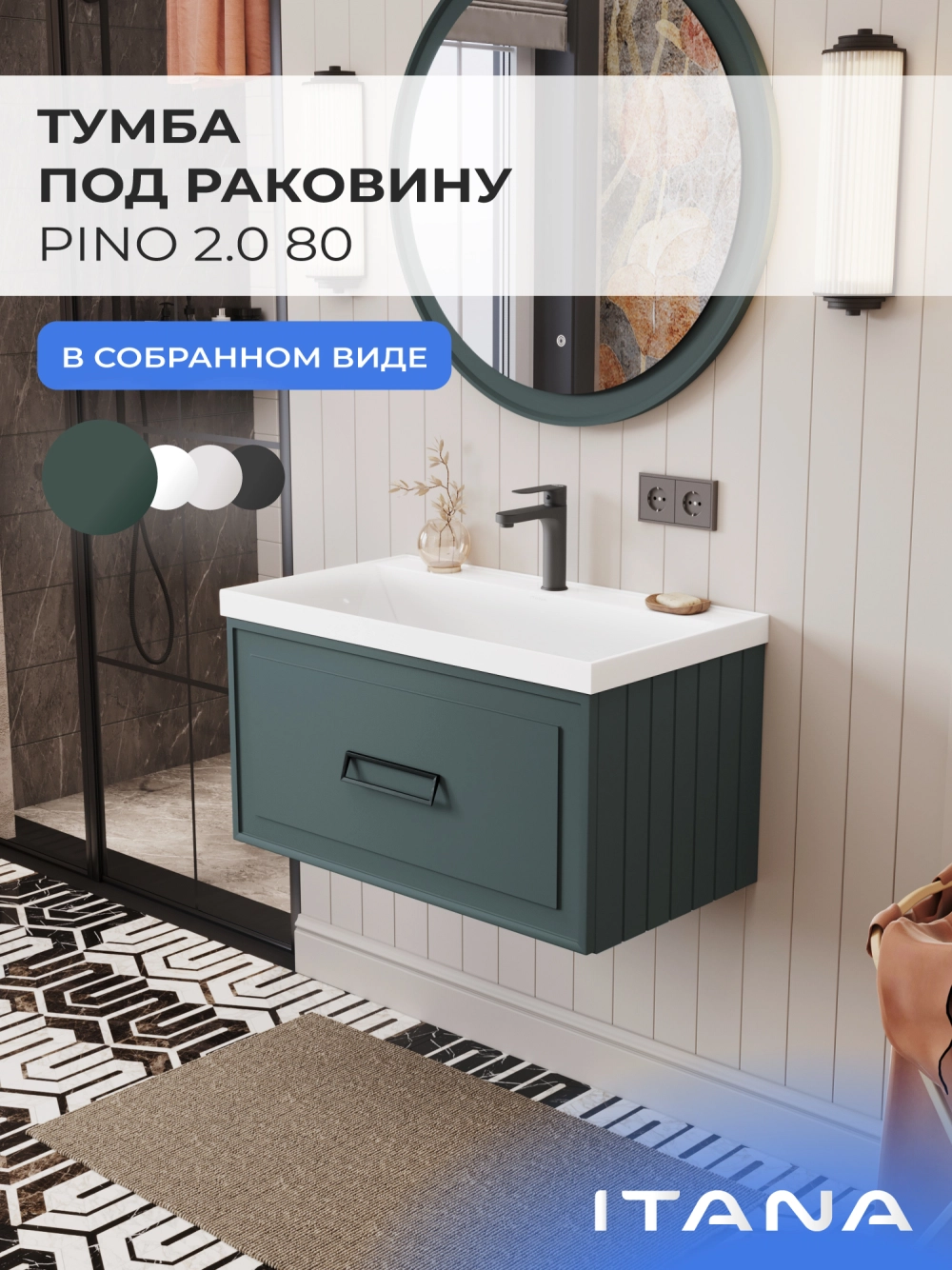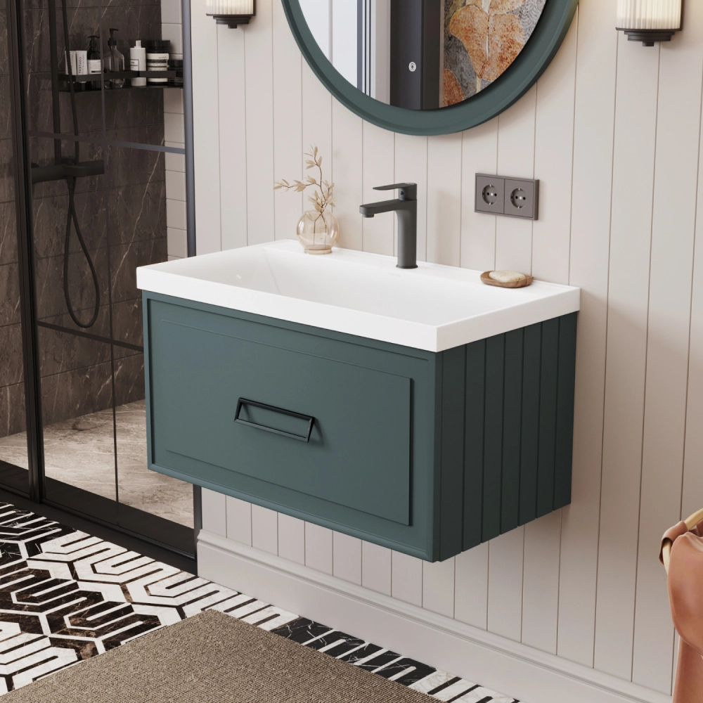Тумба под раковину подвесная Итана Pino 2.0 80 с выдвижным ящиком Веллюто Авокадо
