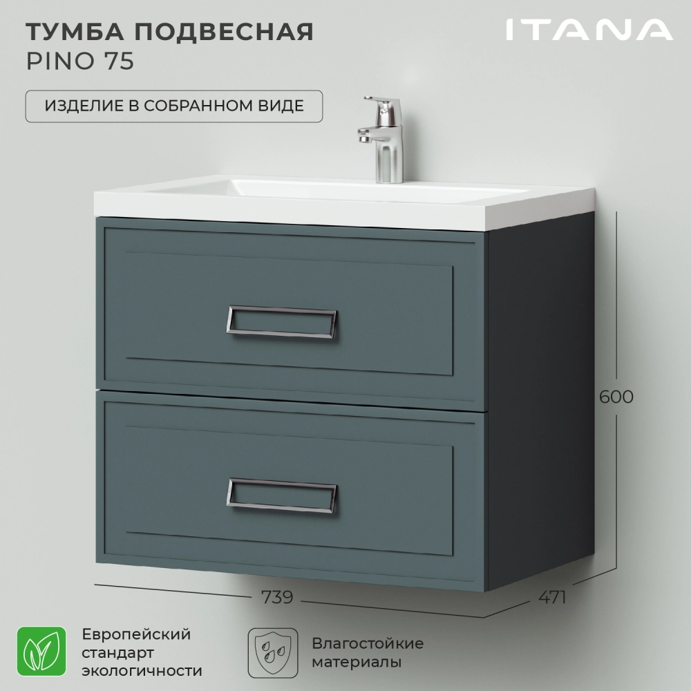 Тумба под раковину подвесная Итана Pino 75 с выдвижными ящиками Веллюто Авокадо