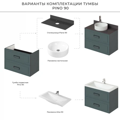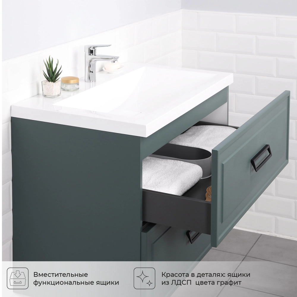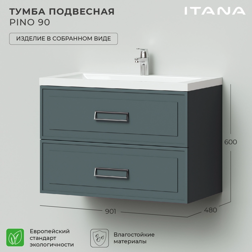Тумба под раковину подвесная Итана Pino 90 с выдвижными ящиками Веллюто Авокадо
