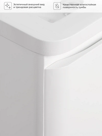 Подвесная тумба под раковину в ванную из коллекции Roberto - это сочетание современной стилистики и богатого функционала. Тумба для ванны изготовлена из прочного МДФ, поэтому выдерживает высокие эксплуатационные нагрузк и обеспечивает дополнительную защиту тумбы под раковину от влаги и перепадов температуры. Качественная фурнитура с доводчиками обеспечивает легкое открывание и плавное закрывание ящиков. Вырез под сифон универсальный, для любого типа. Благодаря своей конструкции тумба обеспечивает удобный доступ к раковине и позволяет скрыть коммуникации. Тумба под раковину в ванную оснащена удобным ящиком для хранения, что позволяет разместить всё необходимое под рукой. Ручки интегрированы в фасад, что исключает возможность случайного удара о фурнитуру. Для точного выбора тумбы под раковину в ванную комнату рекомендуем обратиться к схеме замеров, которая находится на фото в карточке товара, размеры изделия могут отличаться +/-1 см в связи со спецификой производства. Тумба для ванной доставляется в предварительно собранном виде, надежно упакована.