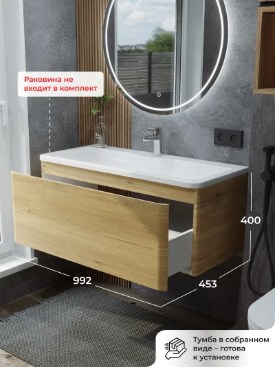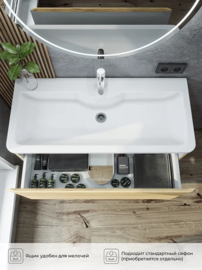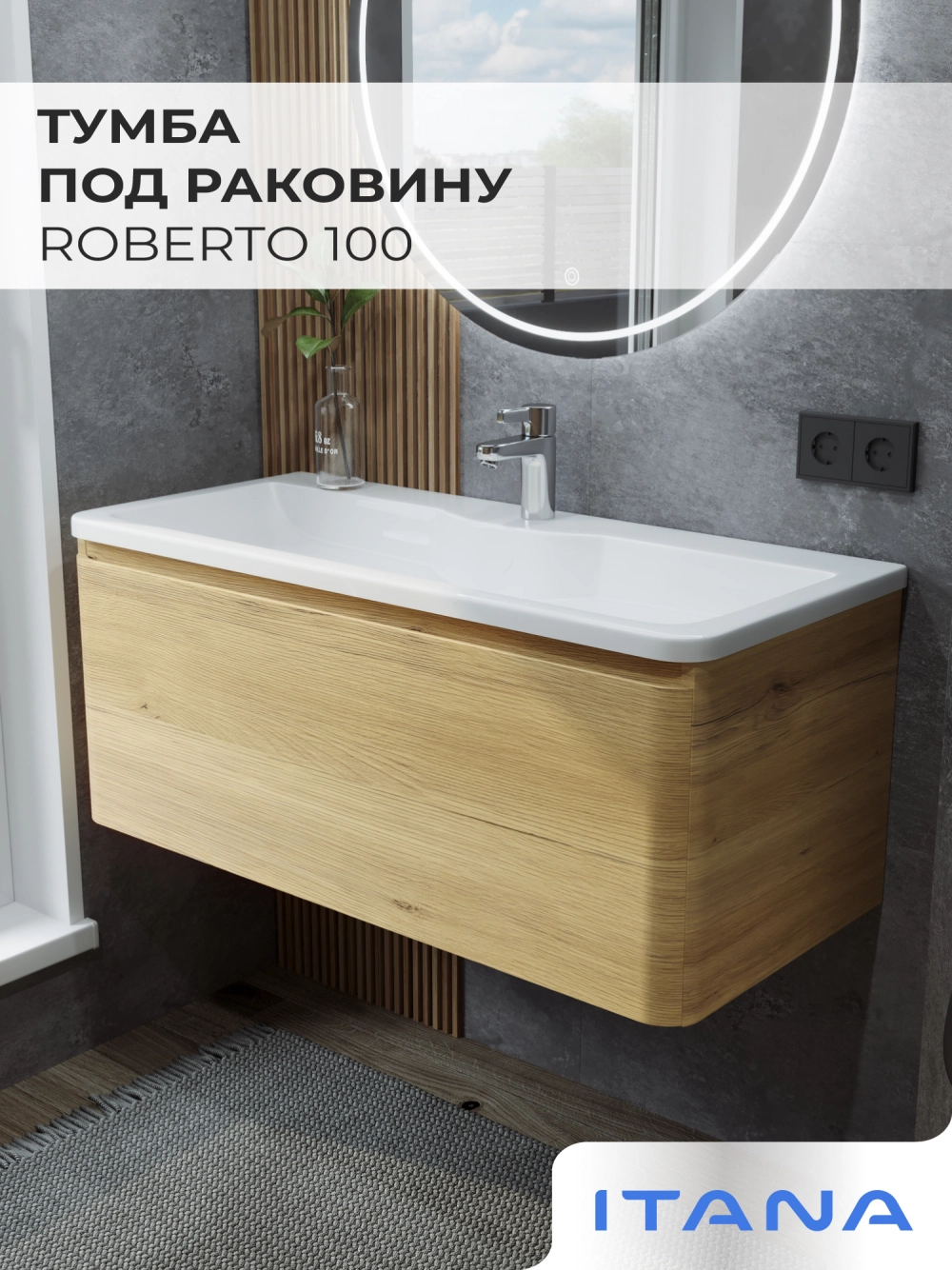 Тумба под раковину подвесная Итана Roberto 100 с выдвижным ящиком Дуб Мавелла Голд