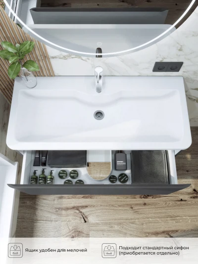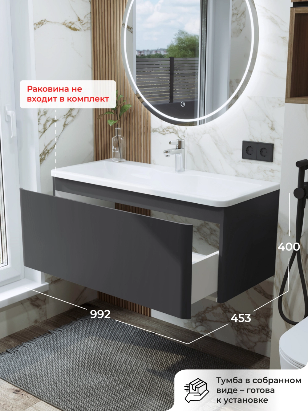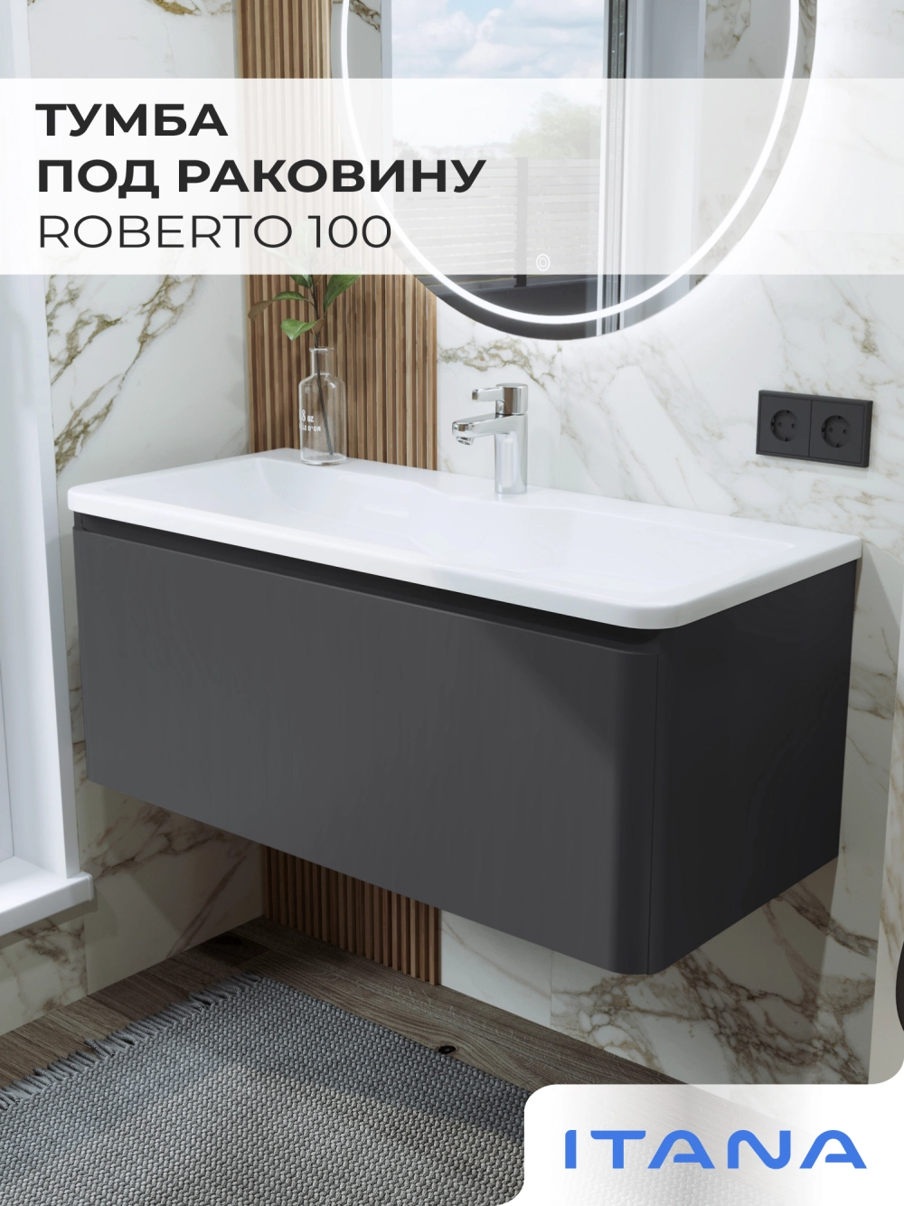 Тумба под раковину подвесная Итана Roberto 100 с выдвижным ящиком Графит