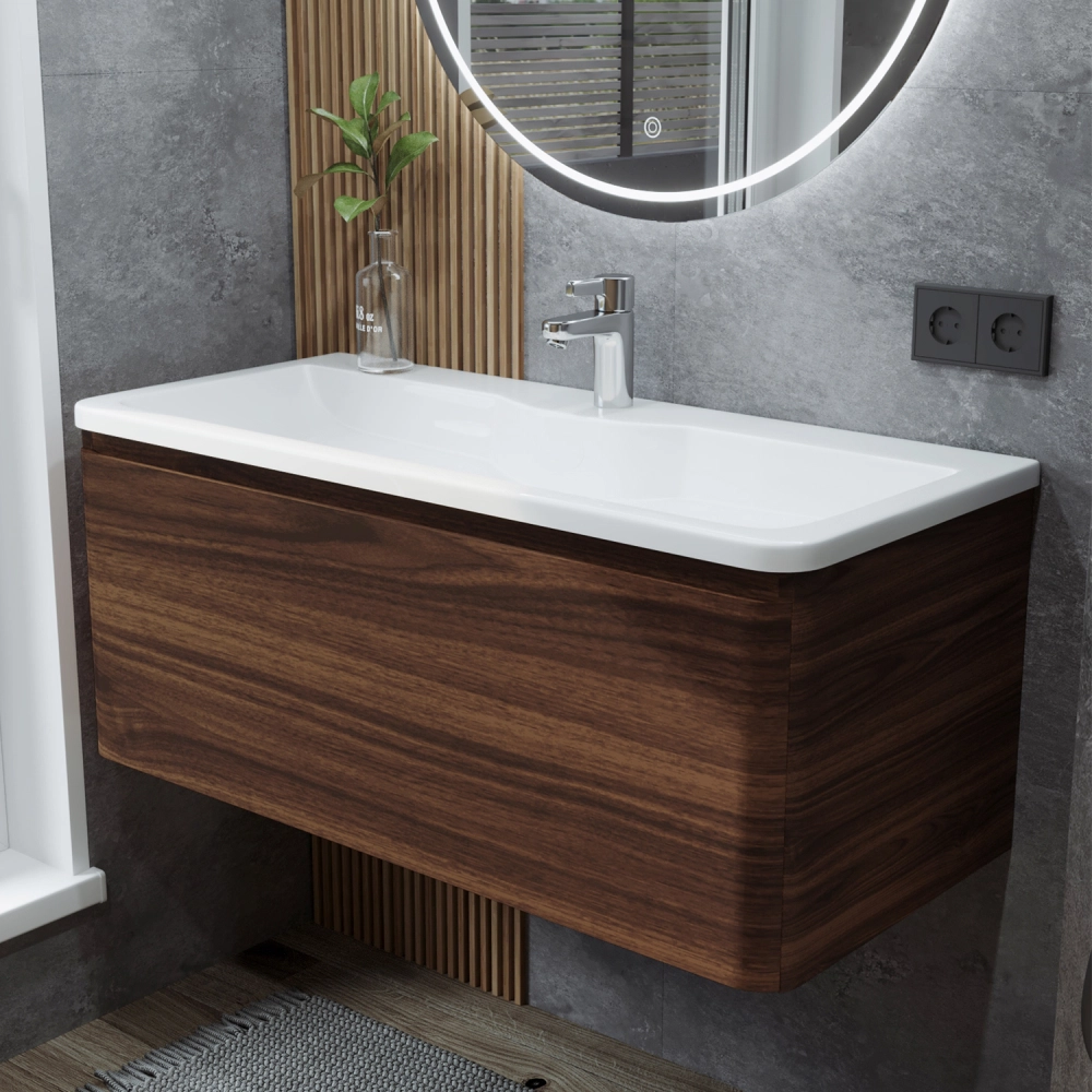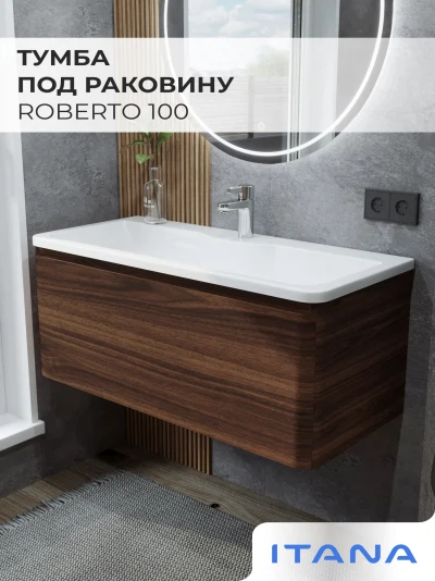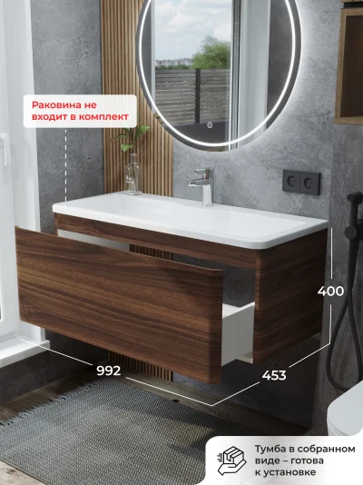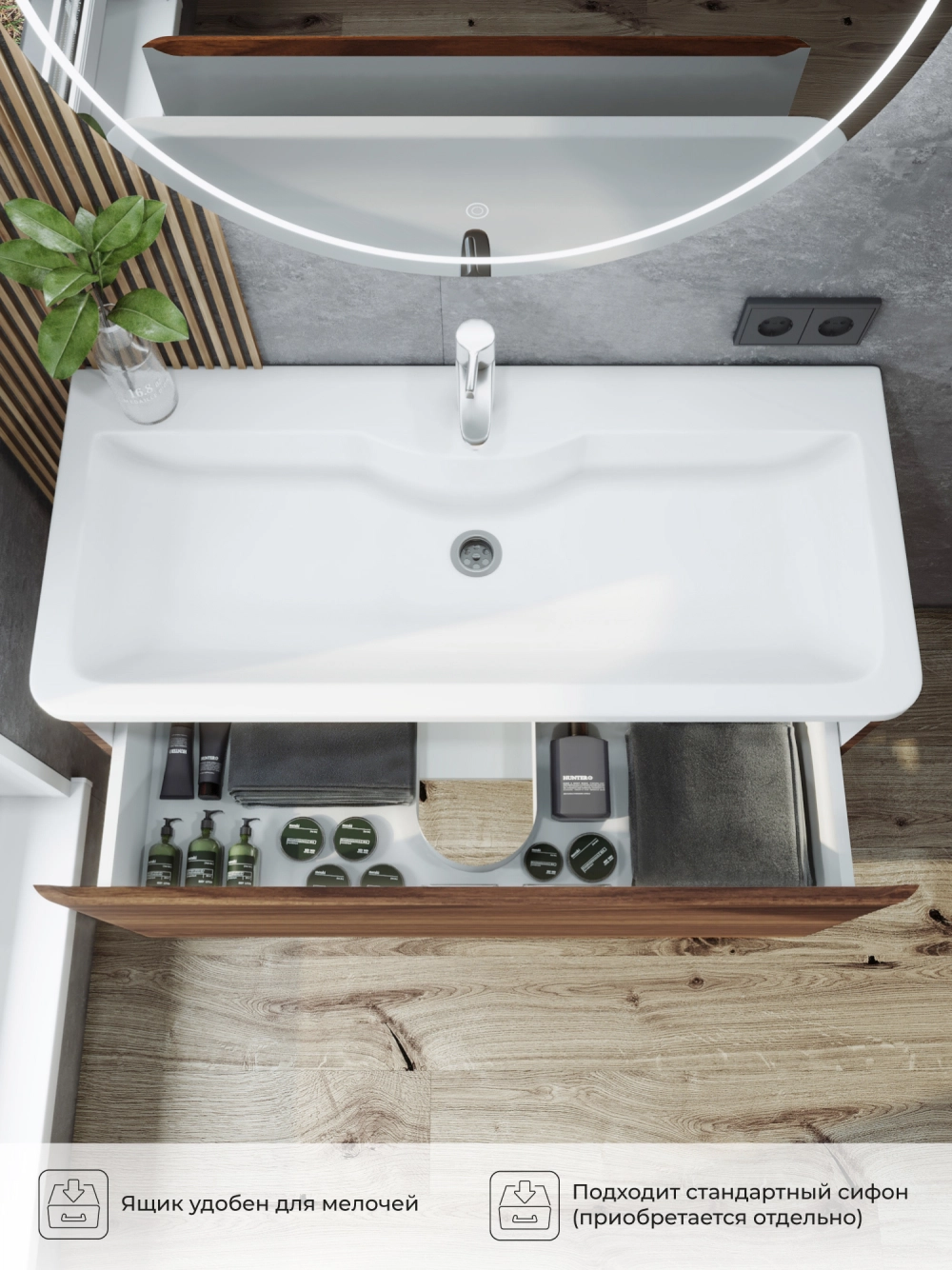 Тумба под раковину подвесная Итана Roberto 100 с выдвижным ящиком Орех Пекан Шоколад Стронг