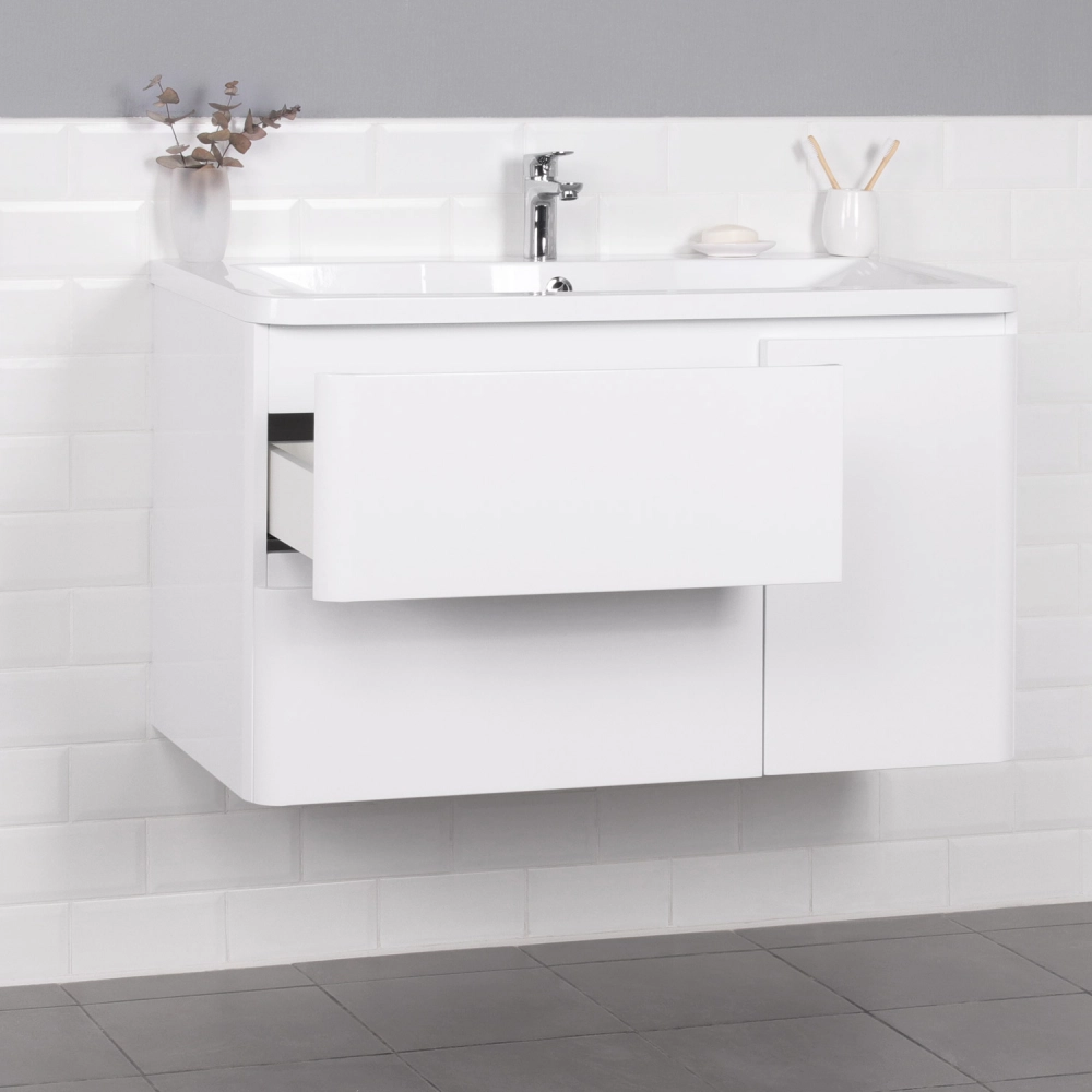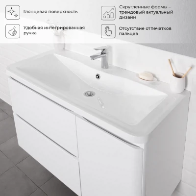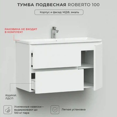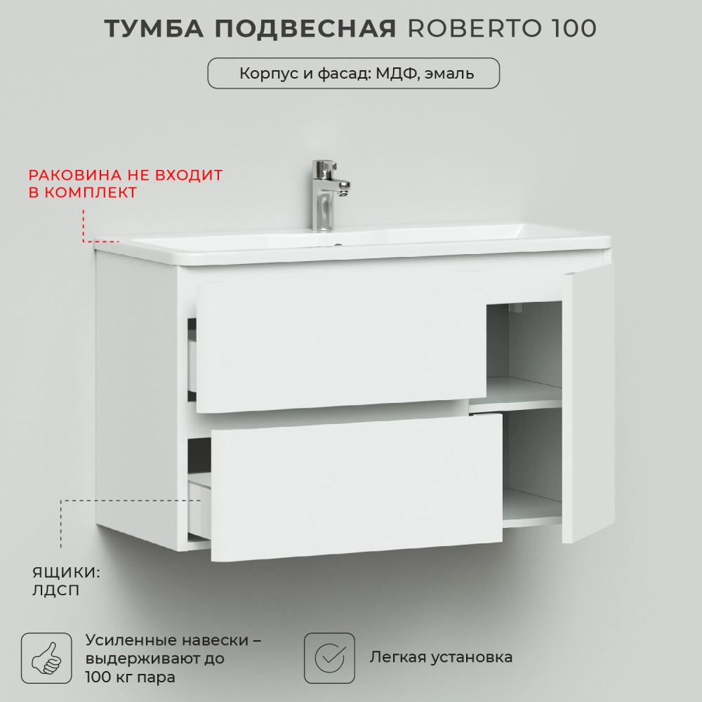 Тумба под раковину подвесная Итана Roberto 100 с выдвижными ящиками Эмаль Белый Глянец