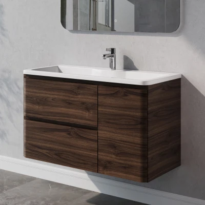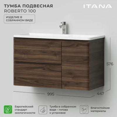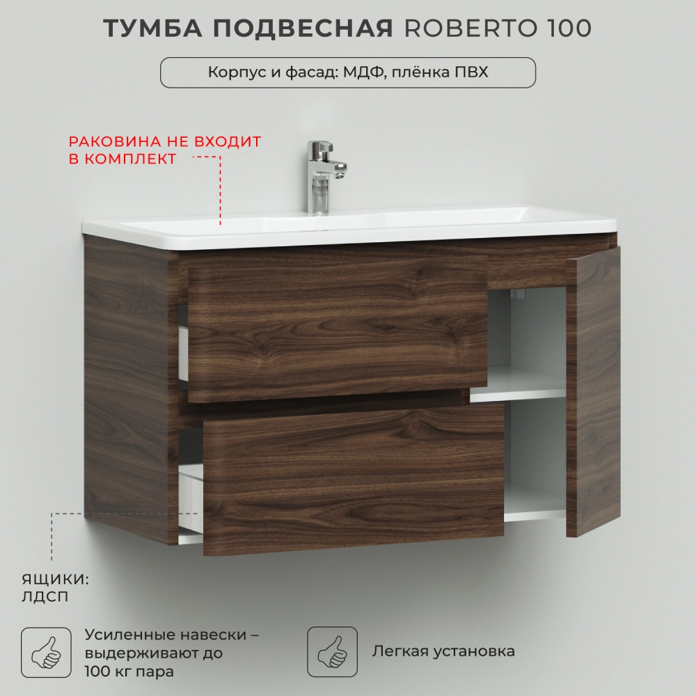 Тумба под раковину подвесная Итана Roberto 100 с выдвижными ящиками Орех Пекан шоколад стронг