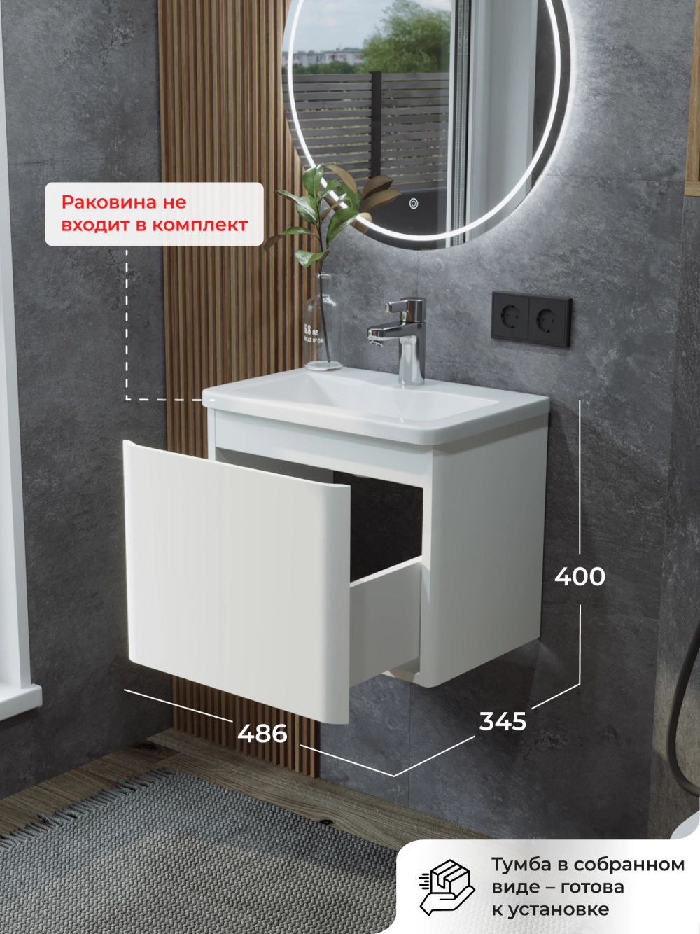 Тумба под раковину подвесная Итана Roberto 50 с выдвижным ящиком Белый Глянец