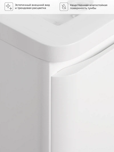 Подвесная тумба под раковину в ванную из коллекции Roberto - это сочетание современной стилистики и богатого функционала. Тумба для ванны изготовлена из прочного МДФ, поэтому выдерживает высокие эксплуатационные нагрузки. Корпус и фасады тумбы для ванной покрыты пленкой, что обеспечивает дополнительную защиту тумбы под раковину от влаги и перепадов температуры. Качественная фурнитура с доводчиками обеспечивает легкое открывание и плавное закрывание ящиков. Вырез под сифон универсальный, для любого типа. Благодаря своей конструкции тумба обеспечивает удобный доступ к раковине и позволяет скрыть коммуникации. Тумба под раковину в ванную оснащена удобным ящиком для хранения, что позволяет разместить всё необходимое под рукой. Ручки интегрированы в фасад, что исключает возможность случайного удара о фурнитуру. Для точного выбора тумбы под раковину в ванную комнату рекомендуем обратиться к схеме замеров, которая находится на фото в карточке товара, размеры изделия могут отличаться +/-1 см в связи со спецификой производства. Тумба для ванной доставляется в предварительно собранном виде, надежно упакована.