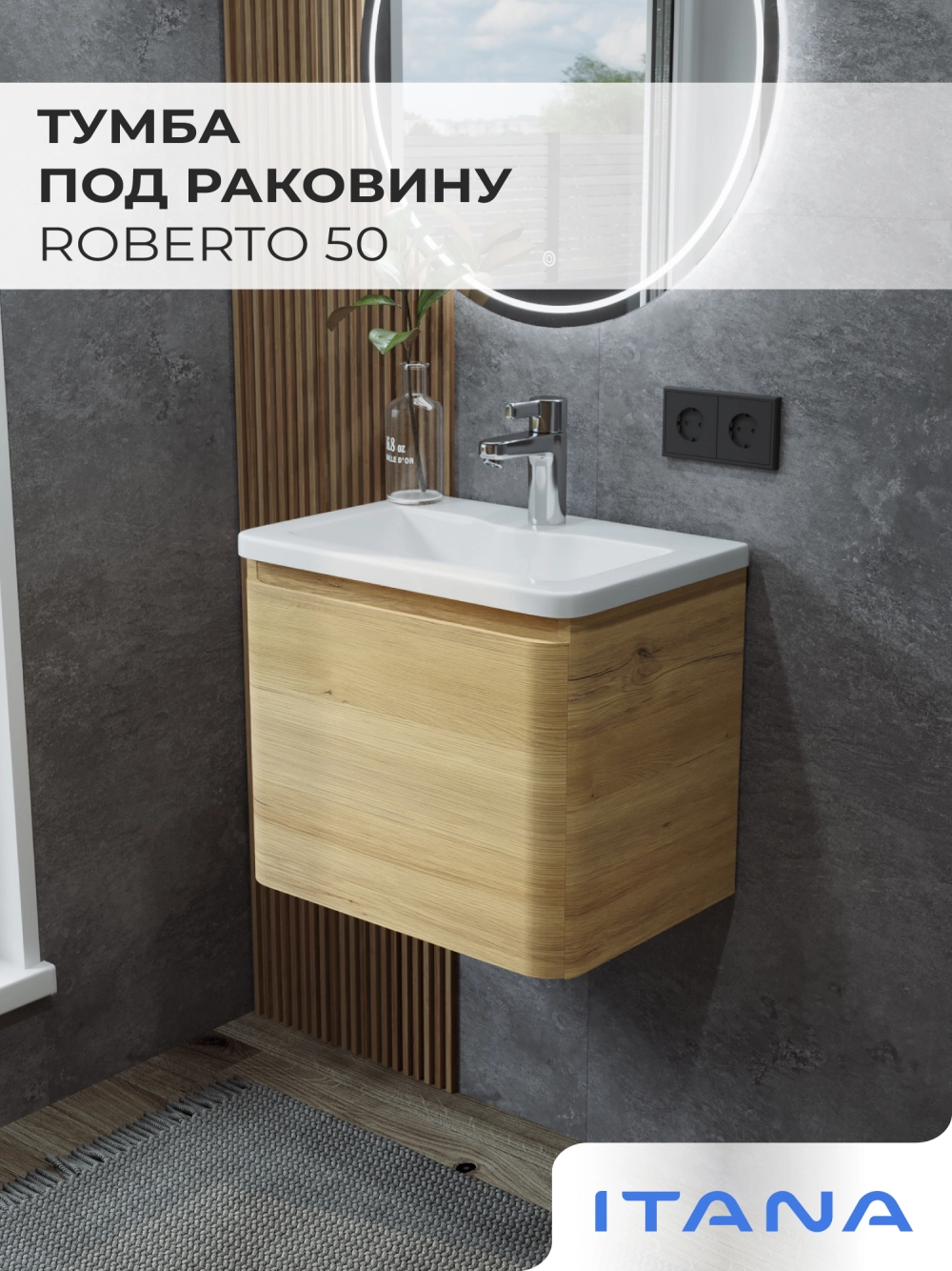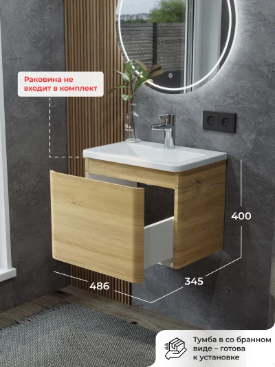 Тумба под раковину подвесная Итана Roberto 50 с выдвижным ящиком Дуб Мавелла Голд